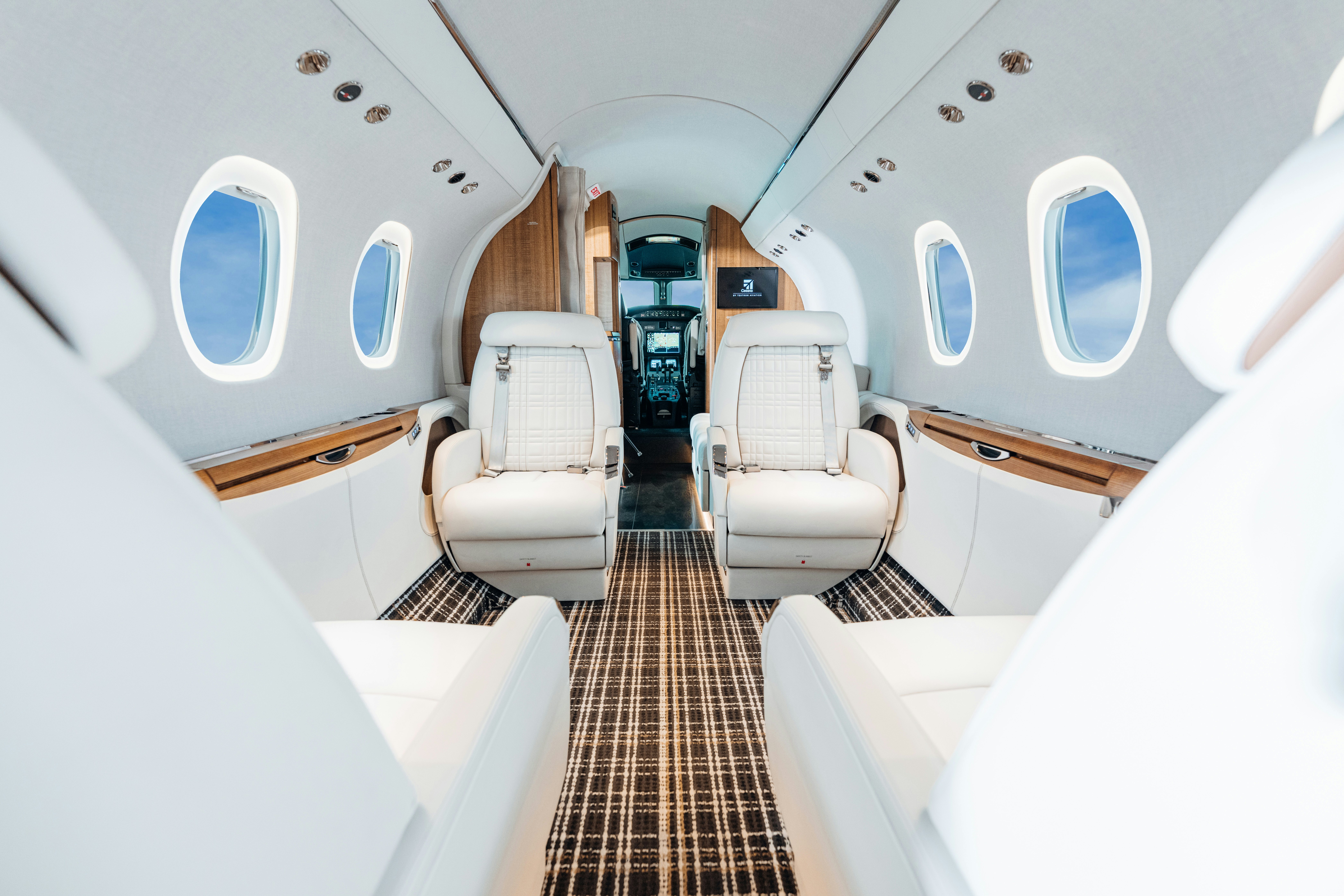 Inside, the cabin welcomes you with a quiet confidence. A flat floor stretches wide beneath your feet, and six feet of stand-up height lets the space breathe. The seats embrace you, with a layout designed to accommodate up to nine passengers and generous spacing that allows for easy movement and ample personal space. At the rear, the lavatory is widely regarded as the largest in its class, offering the style and comfort you deserve, while keeping everything you need comfortably within reach.