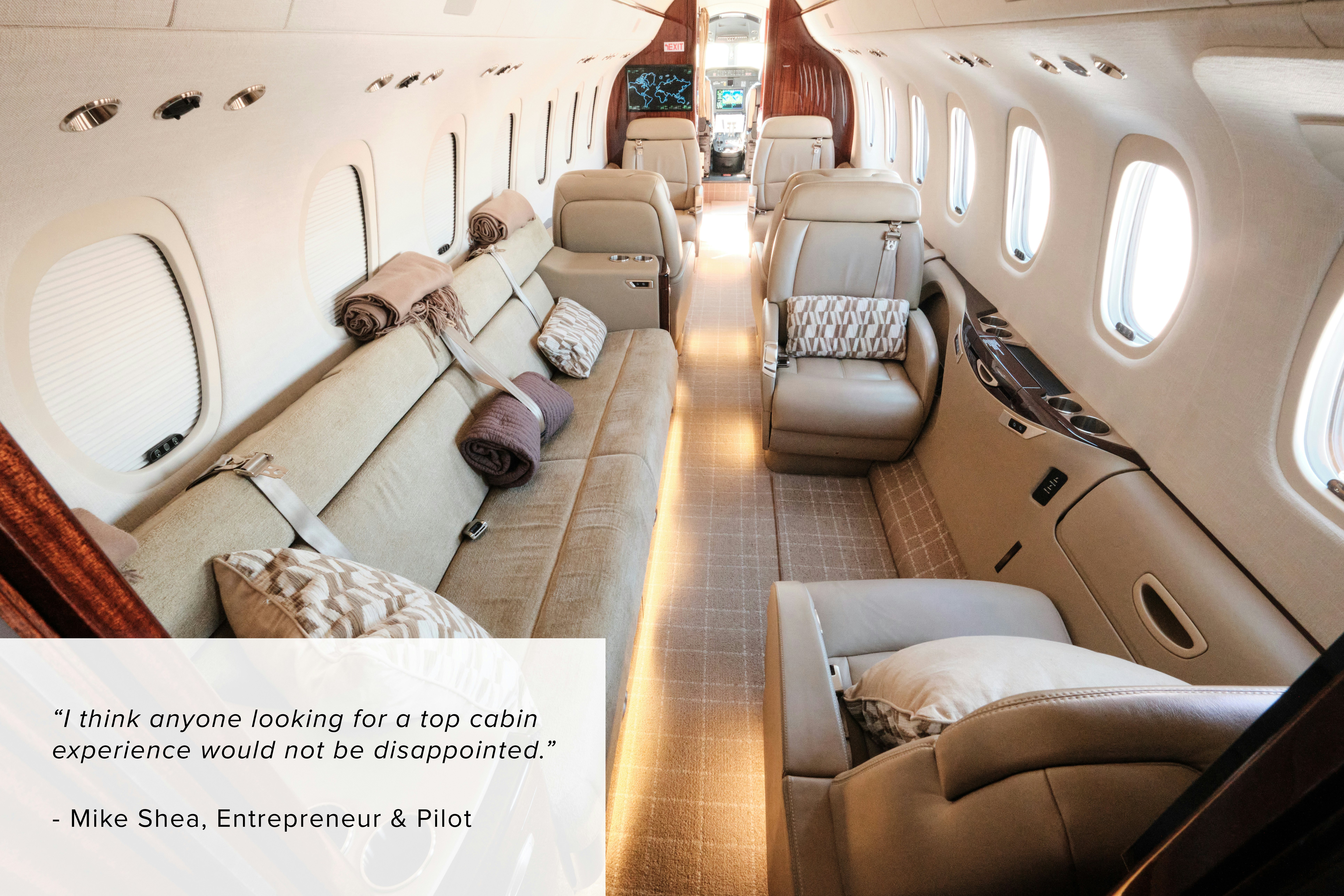 Finding the right aircraft for international travel was not limited to the performance of the product’s range and speed. Shea placed extra emphasis on the cabin during the design of his aircraft, he says he takes pride in a cabin experience designed with passenger comfort in mind. Sporting the best-in-class cabin decibel level, Shea was convinced early on that the Citation® Longitude® jet represented an opportunity for ideal comfort. When he wasn’t commanding the aircraft, Shea used the different seat capabilities, and pull-out couch for comfort and rest. The low-fatigue cabin, paired with the large galley, made the hours spent in the air more relaxing. With the ability to store and prepare fresh meals for passengers and crew, Shea reiterates how a high level of luxury is an imperative feature of the jet. “We were looking for a homelike experience. I think anyone who could be looking for a top cabin experience would not be disappointed.”
