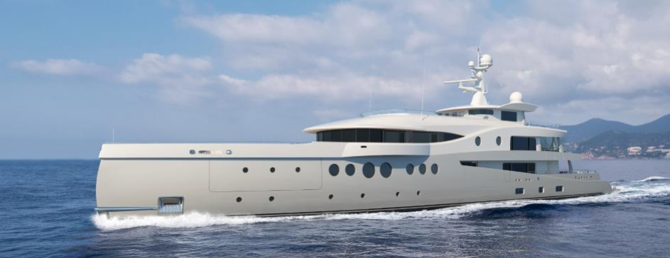 In collaboration with Tim Heywood’s exterior design team, the owner has chosen a sophisticated color palette for the yacht’s hull, which will be a beautiful light gray, and superstructure, which will be painted a vibrant white — the combination is sure to garner many looks when in port. The yacht’s long lines from her Scimitar bow to her swim platform are particularly striking.