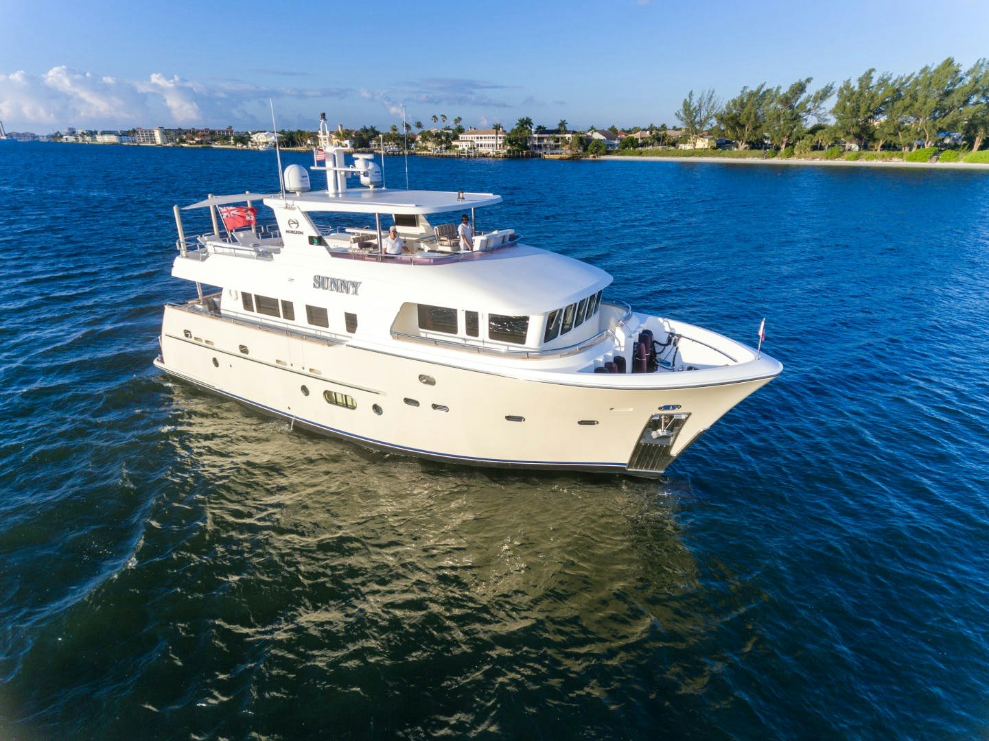 SUNNY is a popular Horizon EP69 that was built in 2012. This exceptional motor yacht perfectly blends long-range capabilities with amenities that make her an entertainer’s dream. She boasts a sophisticated expedition styled exterior as well as a bulbous bow.