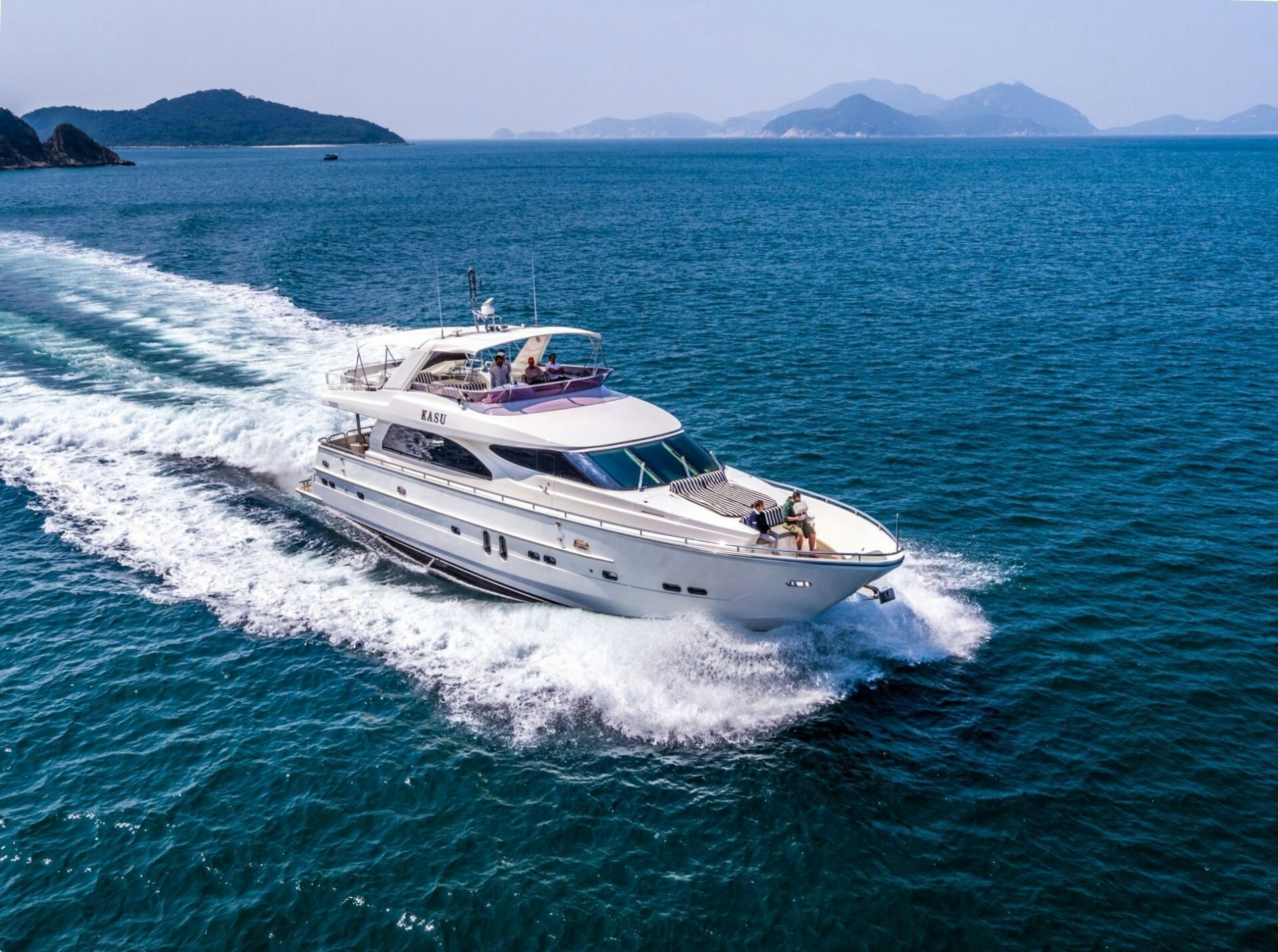 KASU has a beautiful exterior with legendary quality construction by Horizon; known for custom luxury yacht designs. KASU has an exclusive finish with an upgraded interior and is a head turner. KASU has a flybridge motor yacht and has a mooring in Aberdeen Marina, Hong Kong.