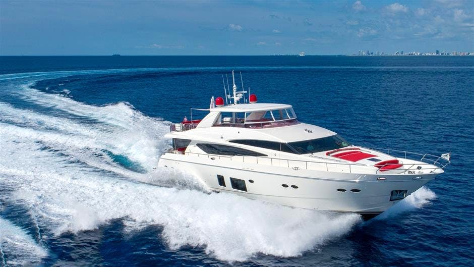Launched in 2011 by Princess Yachts, LOVE N LIFE is a voluminous, sporty coastal cruiser that is ideally suited for weekends on the water with family and friends. She has a beam of 23 feet, two inches (7.06m) and a shallow draft of five feet, 11 inches (1.80m), allowing her to cruise almost anywhere. The yacht is quick, boasting a 24-knot cruising speed and a 28-knot maximum speed courtesy of two upgraded MTU 16V200-CR M94 2650hp engines. LOVE N LIFE also benefits from ABT Trac Fins Stabilizers.