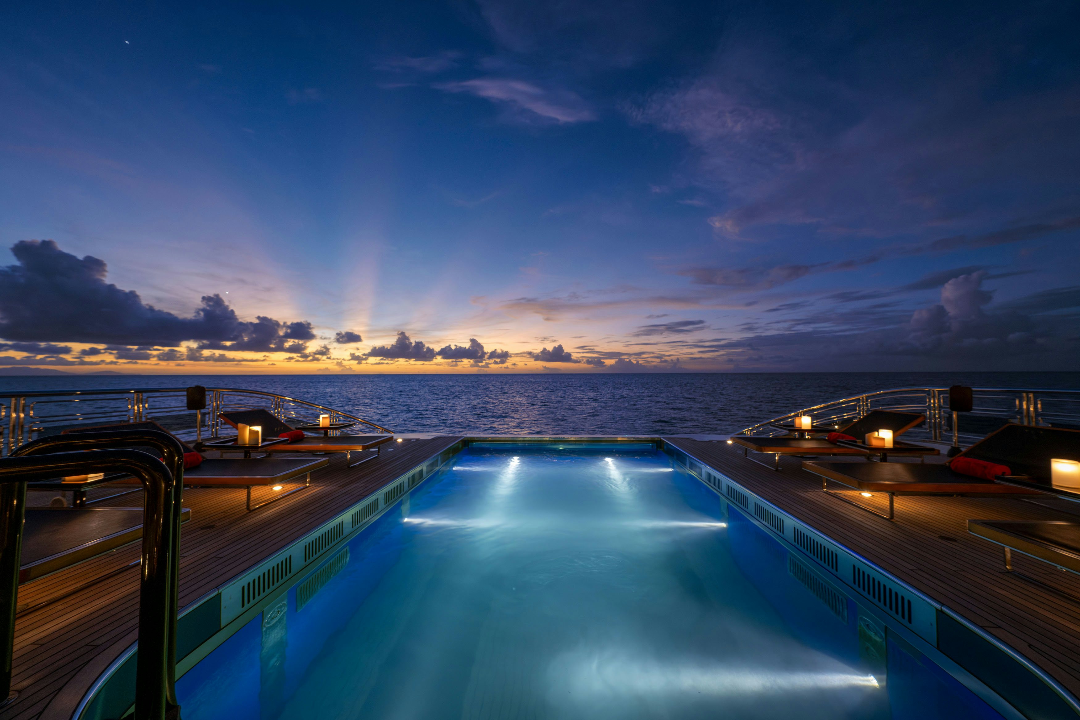 Perhaps ALFA NERO’s most iconic feature is her aft deck, which introduced the world’s first infinity pool with a glass waterfall side. Ingeniously, the pool floor can be raised to create a flush deck, transforming into a dance floor or helipad. “Her iconic aft deck with her infinity pool that transforms into a helipad or dance floor,” says Richard, remains the focal point of her appeal. He adds, “If you only have a little time onboard to visit her during MYS, I’d tell you to head straight out to the aft deck. Standing by the pool, with that view straight over the water, you instantly get why ALFA NERO is so special. It’s the spot that really sells the lifestyle in just a few minutes.”