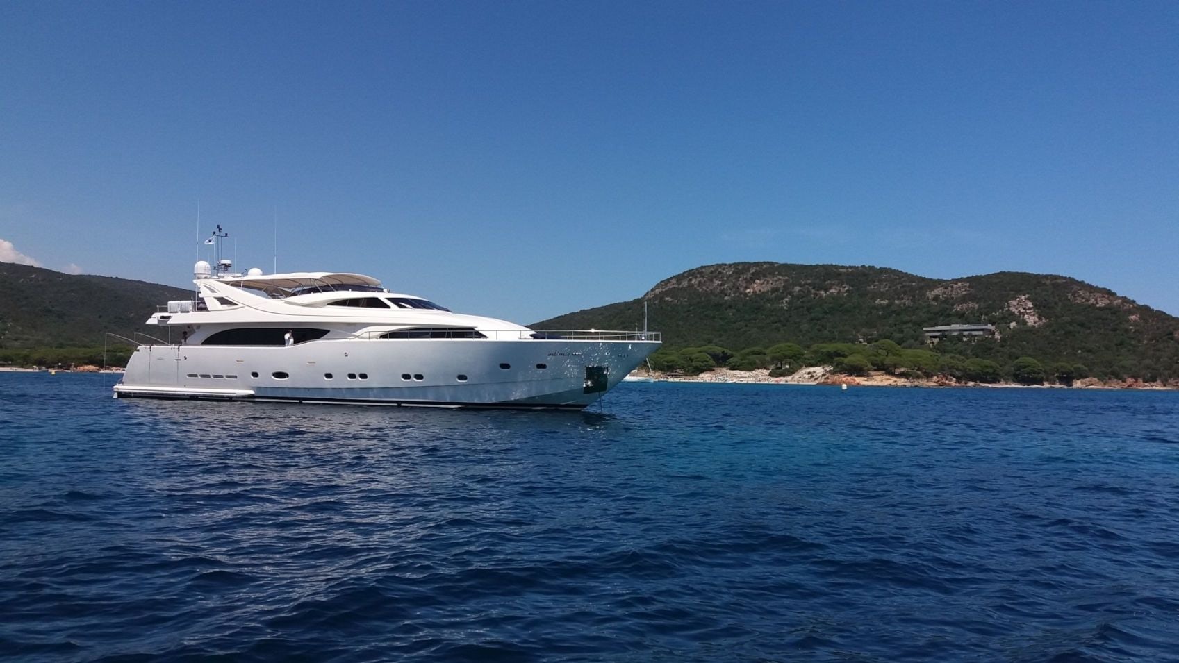 INTIMIS is in excellent condition thanks to her generous owner who spared no expense during her 2013 refit, which cost in excess of €1 million. During this major operation, the yacht’s tender crane was removed from the flybridge; her dinghy and Jet Skis are now handled by a custom Bensenzoni crane in the garage. During the same refit, INTIMIS’s superstructure was resprayed; many technical and cosmetic upgrades also were carried out.