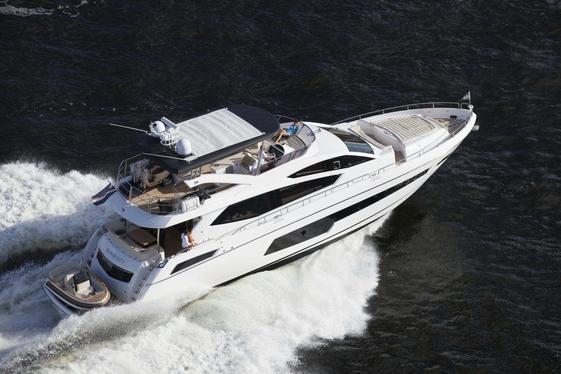 TRANQUILITY’s exterior also is spectacular, featuring the latest design available from the prestigious Sunseeker shipyard. She has stylish lines and abundant natural light courtesy of her large windows. TRANQUILITY’s custom flybridge design has extra seating capacity and a custom sound system, making it the ideal place to relax while on board. From her bespoke wet bar to her full-size barbecue area, TRANQUILITY has all the amenities you needed for an enjoyable on-water experience.