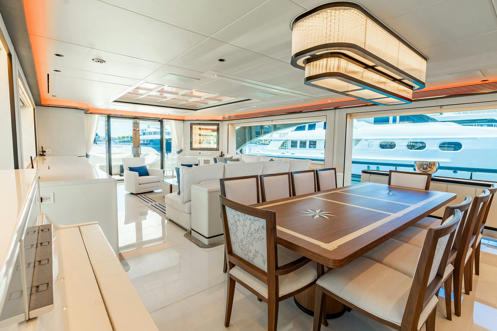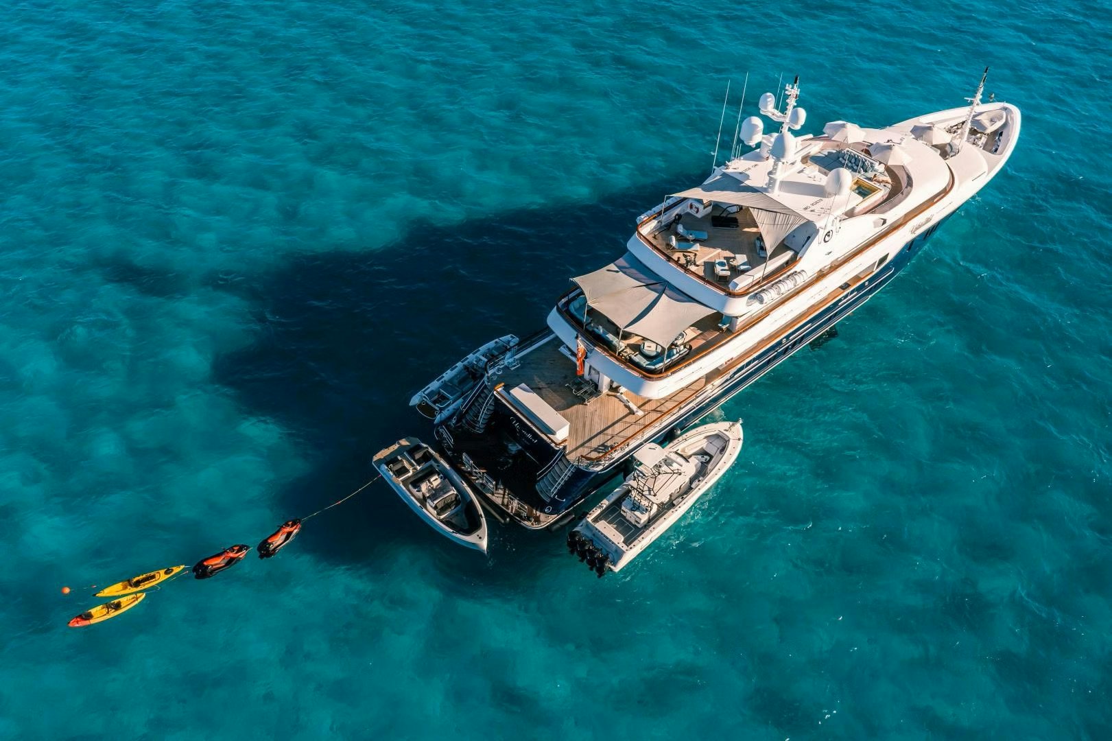 Beyond her accommodations, MISS MICHELLE is set up to make family time on the water easy and enjoyable. A dedicated garage and beach club create a natural hub for swimming and watersports, while generous deck spaces allow different age groups to spread out without feeling disconnected.
