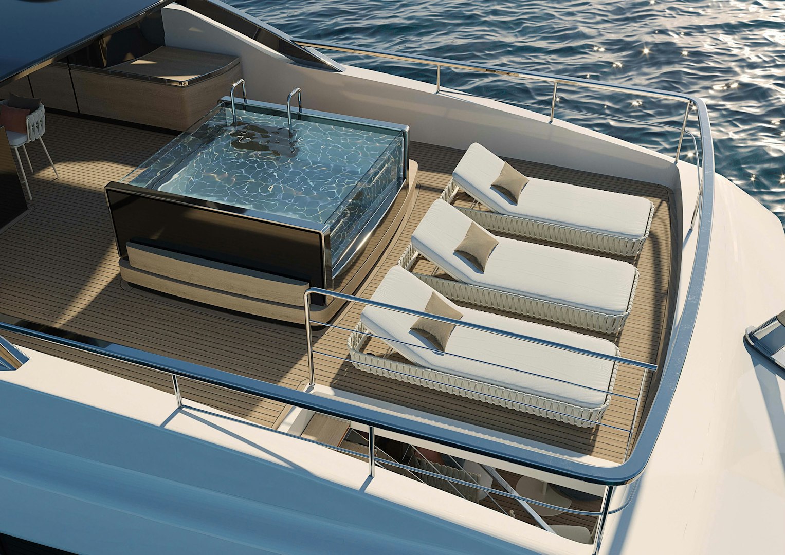 What sets TOGETHER apart right now is her positioning in the market. As broker Charles Hervé notes, a €400,000 price reduction brings her new asking price to €8,590,000, making her “a new yacht, without the wait, without the uncertainty, and below new-build price.” With extended warranty coverage through July 2027, 21–29 knot performance, and a flybridge designed as a genuine living space, she represents a turnkey opportunity for families wanting to step straight into the season.