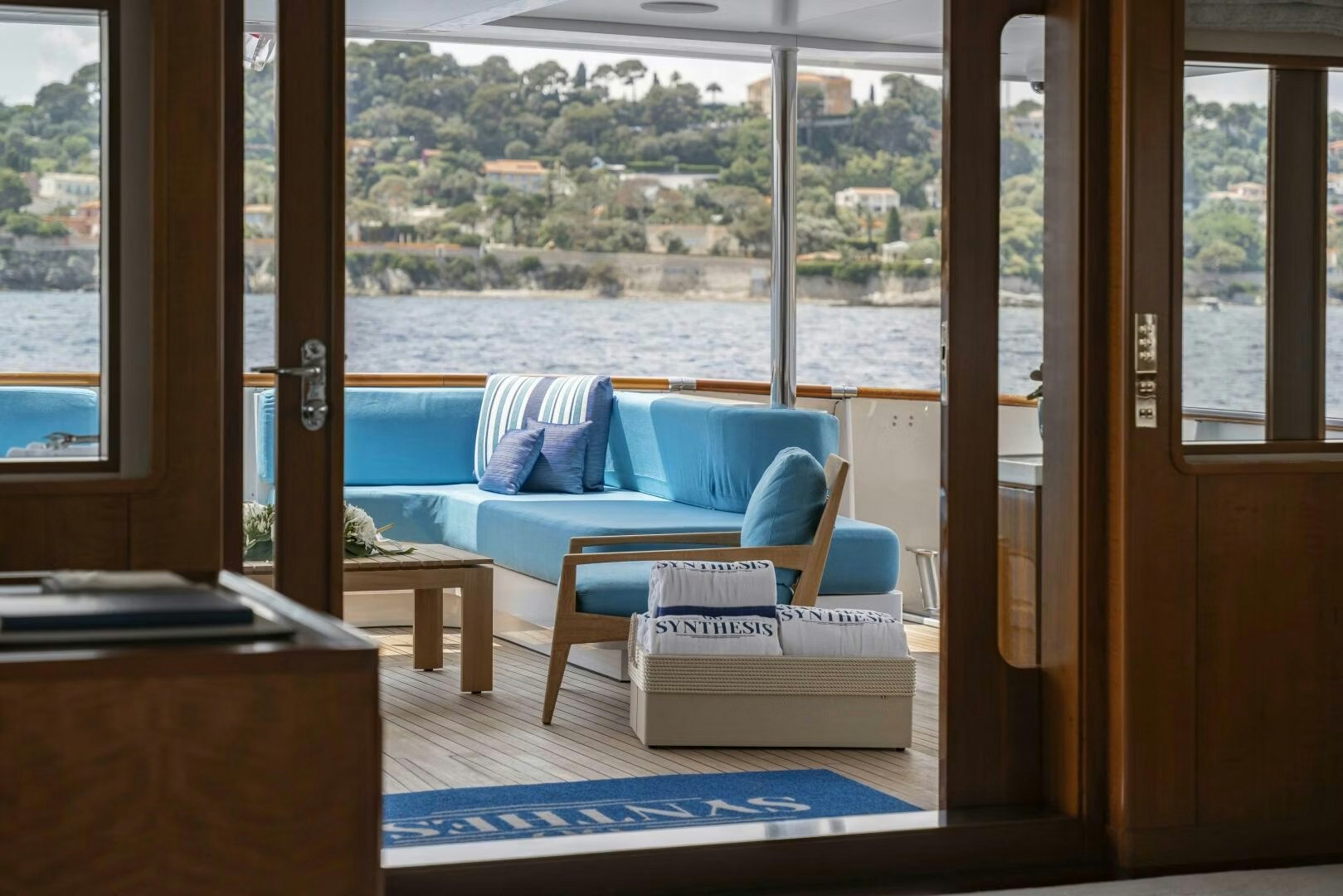 Alongside her, SYNTHESIS 66 brings a very different but equally compelling energy to Greek waters. A classic 1982 build by the renowned Dutch shipyard Feadship, she underwent an extensive refit by Monaco Marine in 2022, emerging in immaculate condition. Measuring 137’2” (41.8m), she accommodates up to 10 guests across five cabins and is run by an experienced crew of eight. Zelda describes SYNTHESIS 66 as a “classic yacht” with an “excellent pedigree,” built “extremely stable and seaworthy,” and a proud “member of the Feadship heritage fleet.”