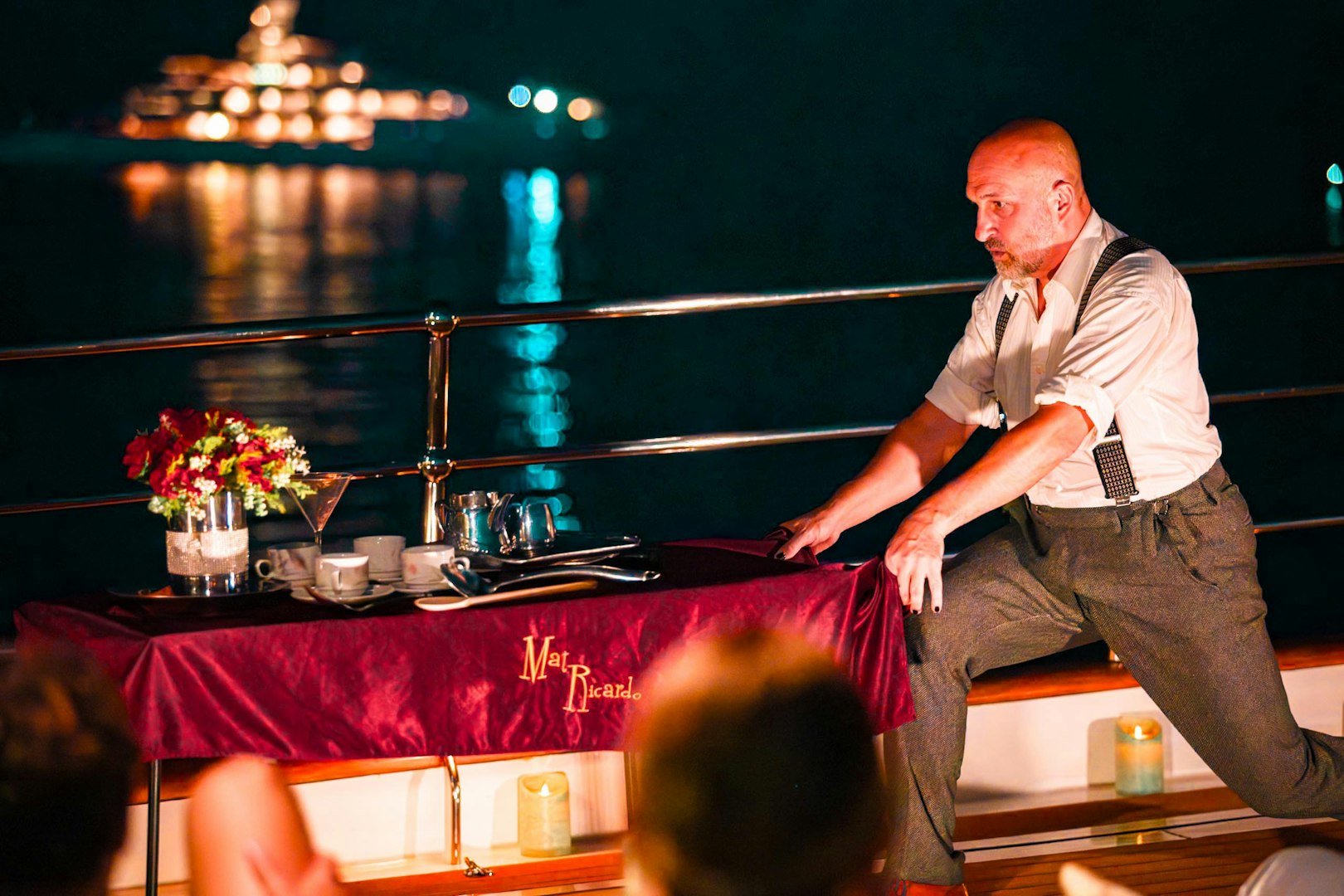 The charter wasn’t just a vacation; it was a reunion of childhood friends who hadn’t been together for years. After learning more about the group and their dynamic, Charlie and his team put together a week-long entertainment itinerary that blended the cruising grounds of the Côte d’Azur with experiences that would bring surprise, emotions, and pure theatrical magic.