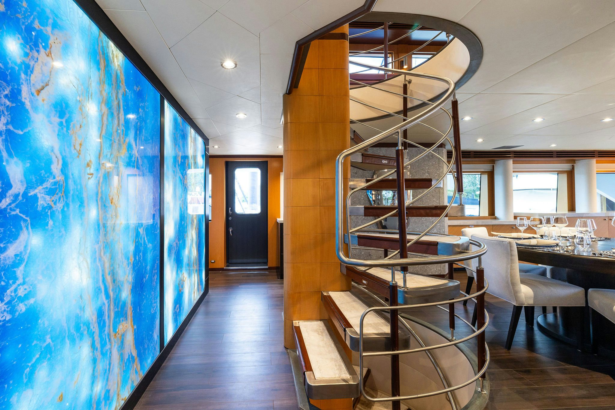 Onboard, it’s all about casual elegance. Wide windows, refined woodwork, a full-beam master suite perched forward on the main deck for unobstructed views, and cozy nooks to watch the scenery roll by. And when it comes to dining, expect fresh catch from the day’s adventure plated beautifully by the onboard chef.
