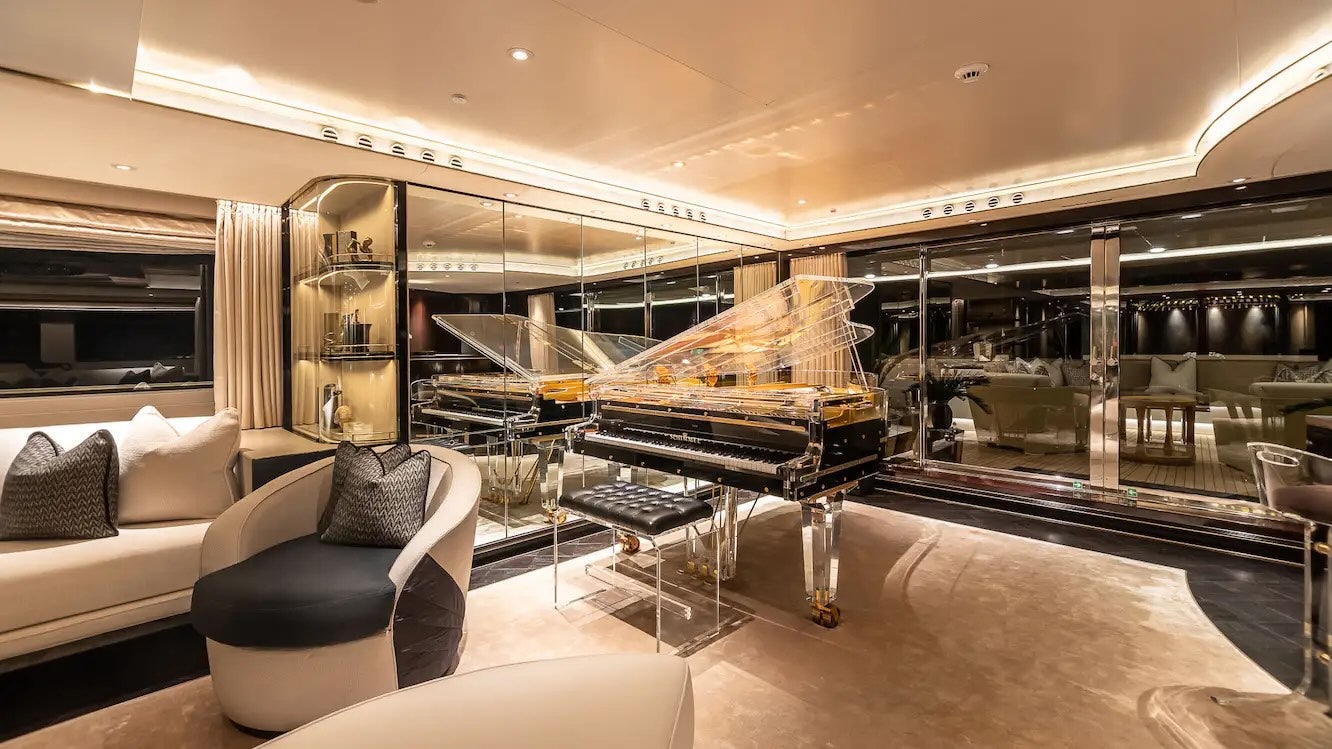 Fresh from a 2023 multimillion-dollar rebuild, the 203’5” (62m) Viareggio Super Yacht SEALION exceeds the expectations of even the most seasoned charterer. She is a multi-award-winning yacht, a testament to her design and craftsmanship. SEALION’s modern and glamorous interior is demonstrated across all spaces, from the striking main salon with leather paneling and a Schimmel Grand Piano to her resplendent guest staterooms. The charter yacht’s three massive decks are centered around entertaining, featuring a split-level sundeck with an oversized 12-person Jacuzzi. A beautiful glass guest lift allows easy access from the lower deck to the bridge deck.
