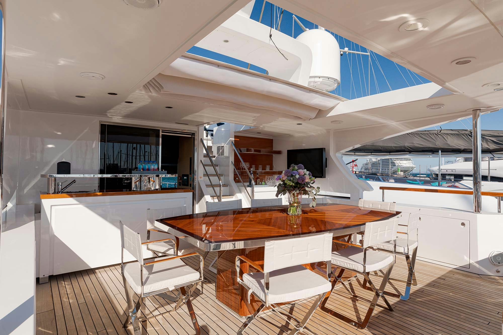 The 2019 95’ (28.95m) Benetti BELLA VITA is sleek and modern, boasting incredible volume for her size range. Her classic Benetti exterior styling blends well with her contemporary interior and furnishings. She features a lovely aft deck seating area for casual dining and a foredeck Jacuzzi. BELLA VITA’s interior is striking with full-length windows and chic furniture. There is a dramatic contrast of chromatic furnishings and light and dark oak parquet flooring. Her dynamic crew is adaptable to all sorts of charterers, be it family-oriented fun or a more formal holiday.