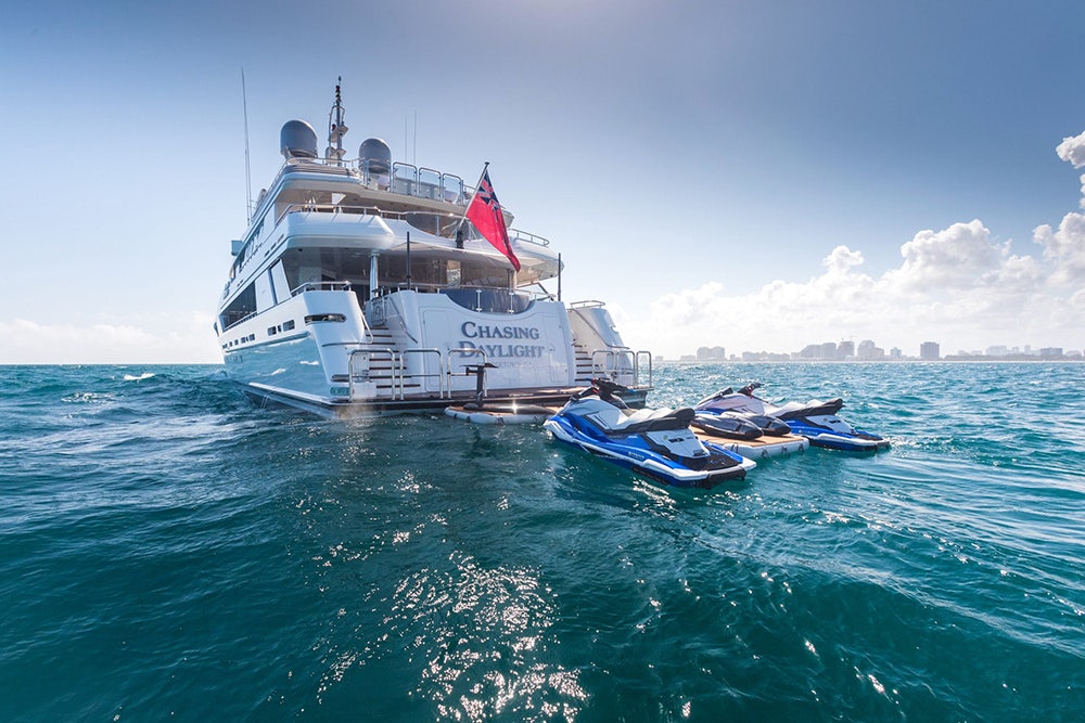 The 164’ (50m) Westport charter yacht CHASING DAYLIGHT boasts a proven, well-rounded charter program fit for all types of guests. From exciting themed dinners to a full day of exhilarating water sports, CHASING DAYLIGHT is the adventurous charterer’s dream. She features an elevator servicing all decks for seamless movement. Her interior is contemporary and warm with plenty of natural light. CHASING DAYLIGHT’s guest accommodation layout is versatile, featuring an unrivaled VIP cabin with a king-size bed and a private balcony. The yacht’s outdoor spaces are primed for endless hours of fun and relaxation, including her sensational sundeck with 360-degree views of her cruising grounds.