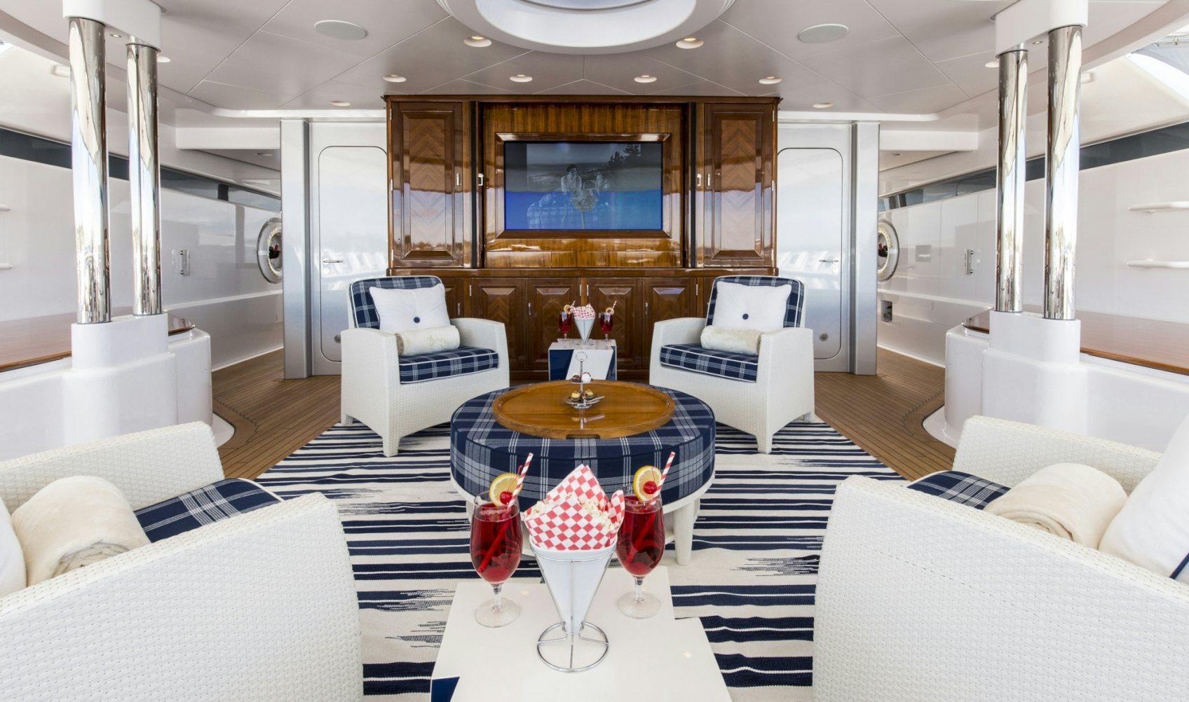 We have two tenders and one crew boat; these include a 28-foot (8.5m) Riva Aquarama Special and a new 28-foot (8.5m) Gar Wood Streamliner, plus the “toys” for all ages. We use the BLUE MOON about 80 to 100 days per year on average. When we are aboard, it’s like living in a different world. We can sleep in the morning without an alarm or stay out all night with guests if we like. We mostly do our entertaining on the boat because there are so many ways to entertain. We have traveled from Alaska to the Mediterranean. It would be difficult to say what we like best because every place has been tremendous. We don’t really have a favorite. We genuinely have liked every place we’ve traveled to. We’ve been fortunate enough to enjoy the kind of trips that you can’t do with a car or a plane; there is no limit to what you can do with a yacht. Plus, you meet such wonderful people of all different nationalities when traveling by yacht.