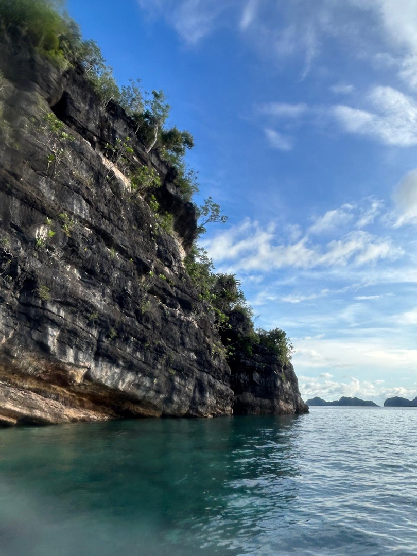 “During our trip, we hiked to viewpoints, dived and snorkeled among some of the richest marine biodiversity on the planet, and explored hidden sea caves,” says Amy. “Every day brought a new experience. Hiking to a heart-shaped lagoon and taking in the views, swimming with stingless jellyfish, and snorkeling through the Tomolol Caves were all moments I’ll never forget. One standout snorkeling site, known as ‘The Wedding Cake,’ felt like swimming inside a giant aquarium, with coral, fish and sea turtles everywhere I looked.”