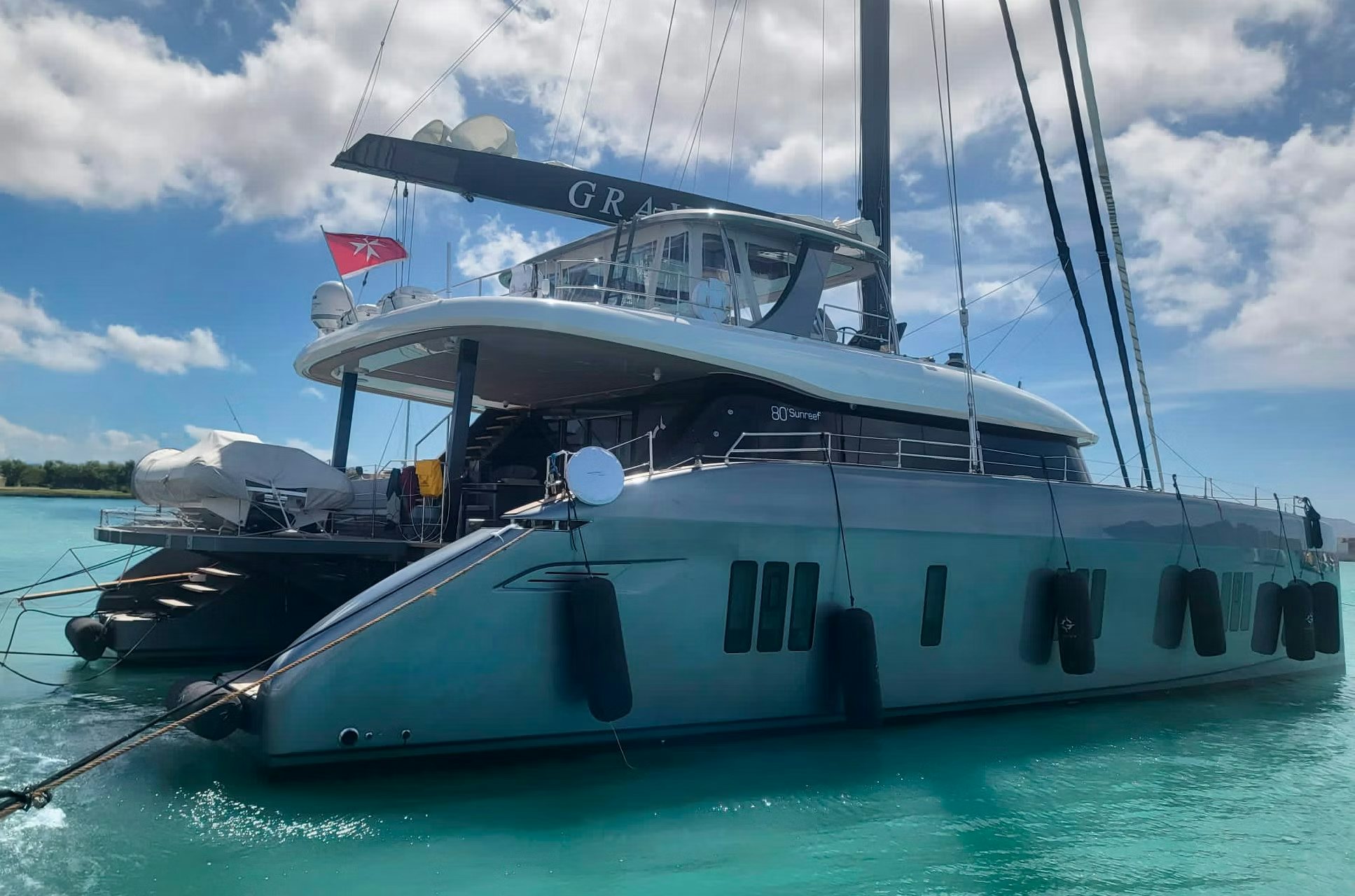 The 80’ (24m) sailing yacht GRAYA offers charter guests an exceptional experience that blends luxurious comfort, contemporary design, and performance sailing.