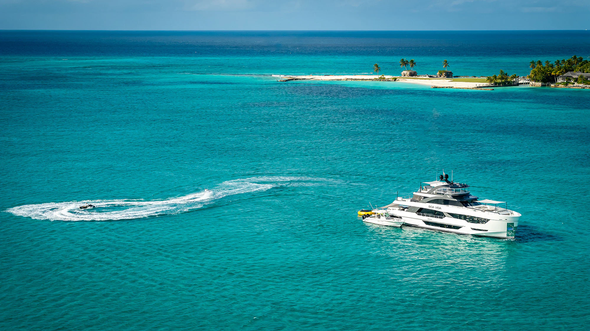 At her core, BOA VIDA delivers scale, adaptability and structure. She offers expansive deck areas from bow to stern, multiple bar stations — seven in total — extensive glazing for uninterrupted views, diverse lounging and dining zones, and a comprehensive toy inventory suited to varying activity levels. Her layout and crew structure are well-suited to hosting either family groups or friends traveling together. Combined with a program built on experience and a crew that understands both discipline and celebration, BOA VIDA presents a charter platform where preparation and personality operate side by side.