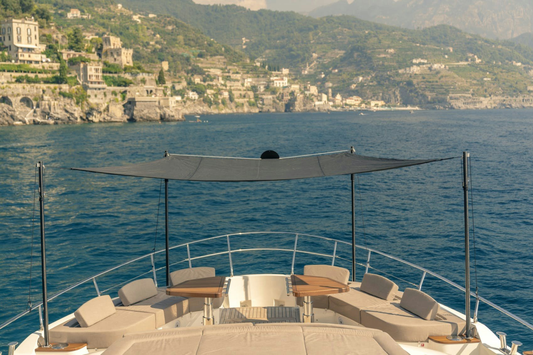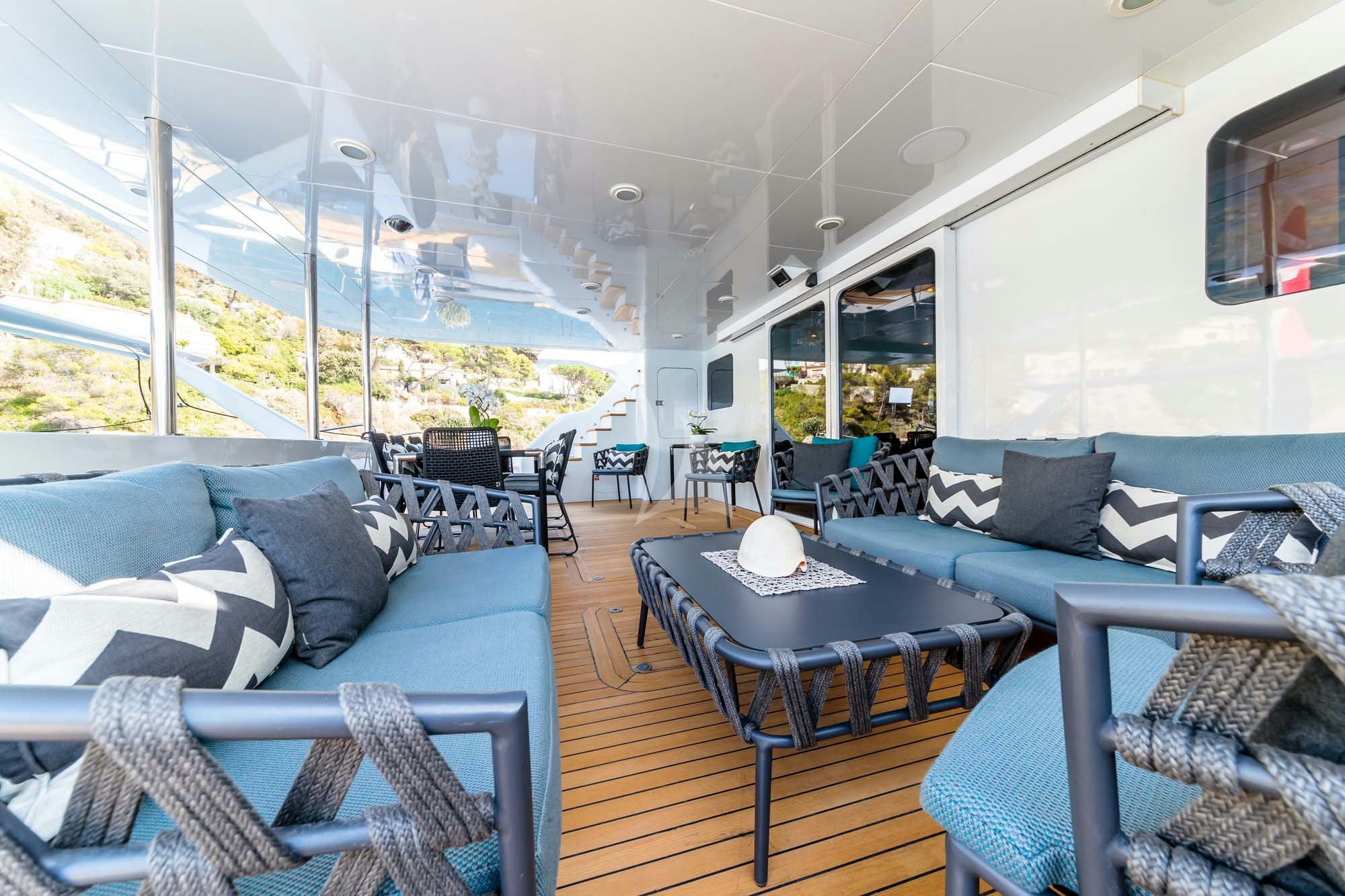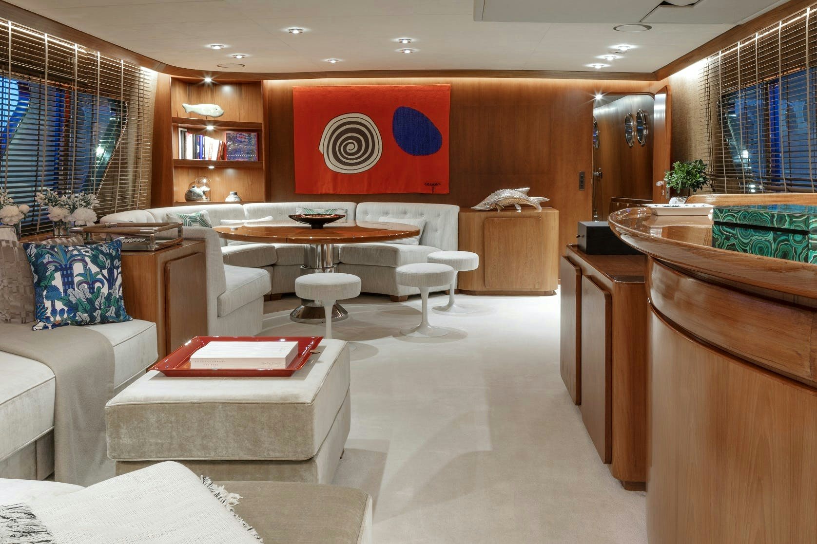 ROCCO is a member of the MCY96 series; a generation celebrated for its success and desirability in the charter market. This award-winning category boasts the latest and greatest technological features and was designed with comfort and safety in mind, influenced by Nuvolari Lenard’s take on futurism. The 96’ (29.5m) ROCCO is a sleek, modern yacht for up to 10 guests. Her awe-inspiring exterior spaces comprise a spacious aft deck, a stunning flybridge with a service bar, a comfortable sofa and large sunpads and a covered area forward with seating and beautiful soft-toned blue cushions. Charter yacht ROCCO is available to cruise the South of France.