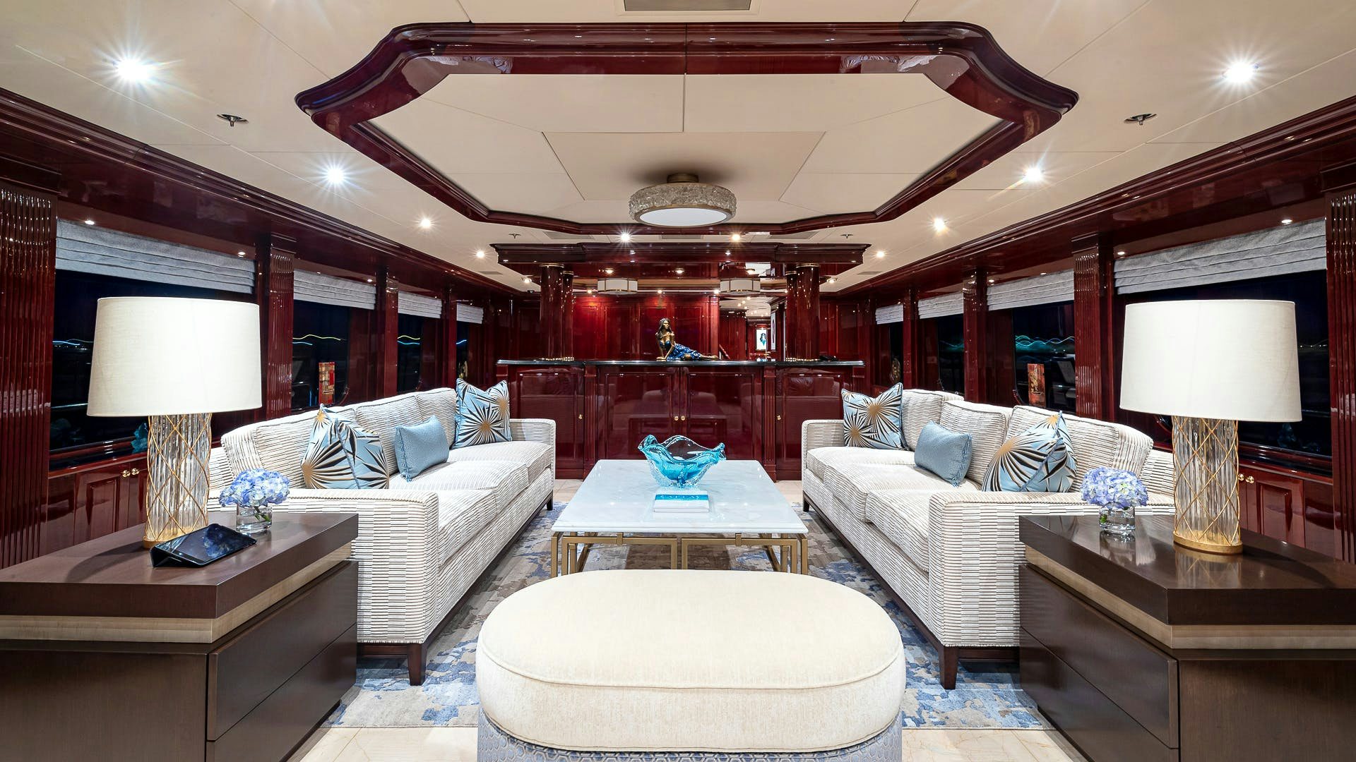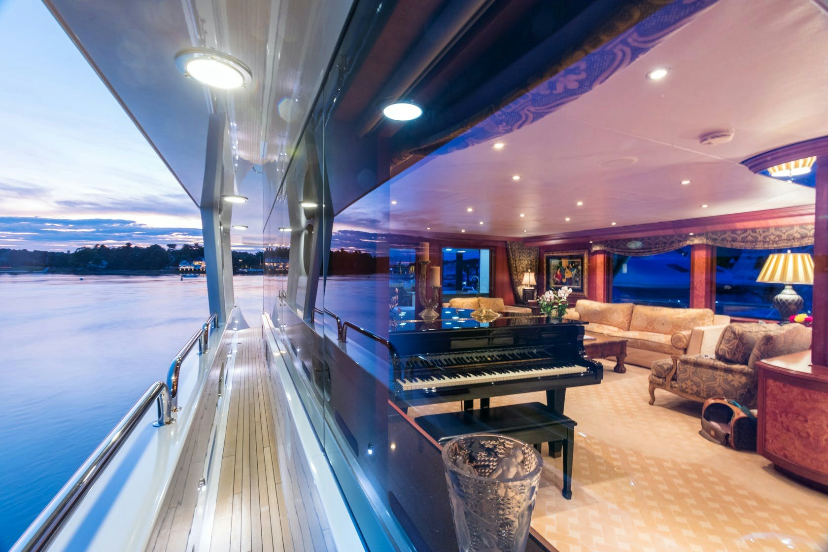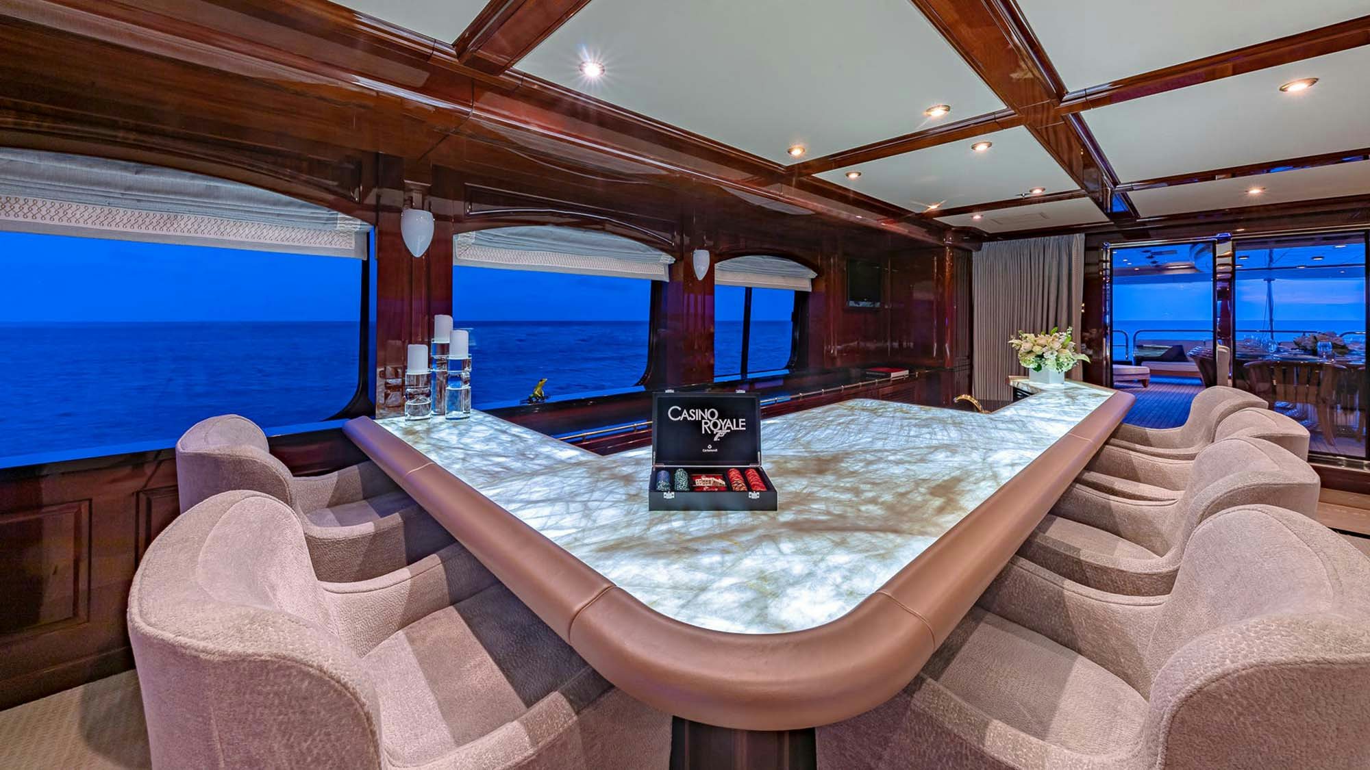 The 163’ (49.68m) CASINO ROYALE is as glamorous as they come, showcasing exquisite Mahogany detailing, an expansive sundeck and a massive skylounge centered around entertainment. She is the ultimate charter yacht for those wishing to be engulfed in pure elegance. CASINO ROYALE is perfect for large groups, with six stunning cabins for up to 12 guests. Her skylounge features a sunken bar and space to enjoy a movie, while her sundeck invited you to soak in the Jacuzzi or gather around the 10-person bar for a craft cocktail. CASINO ROYALE demonstrated exemplary Christensen craftsmanship and is sure to impress charterers of all ages. Charter yacht CASINO ROYALE is available to cruise the West Mediterranean.