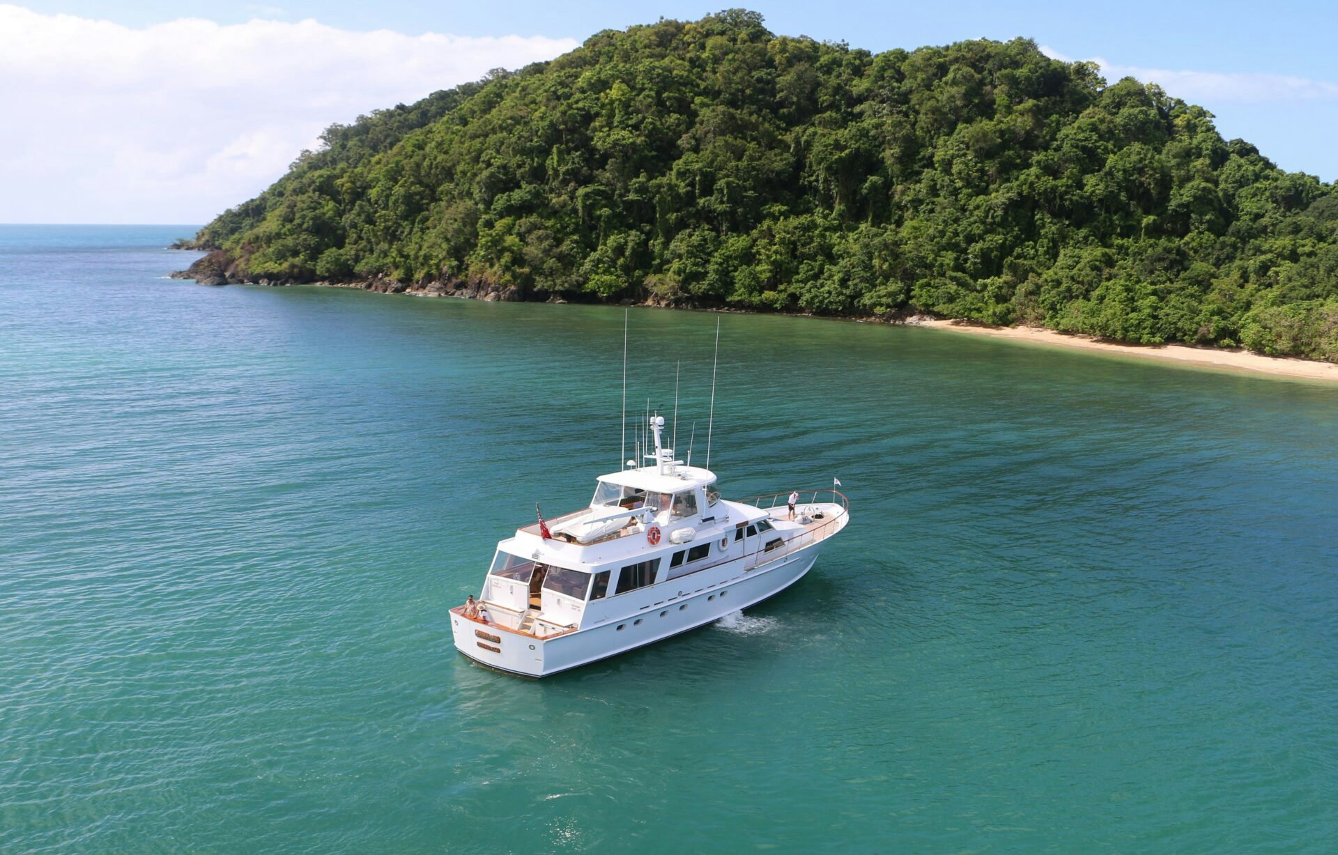 The welcoming salon features refined lounging areas, an entertainment system and a bar, where you can sit and sip your favorite drink. Forward of the main salon is the chef’s galley, captain’s bridge and crew areas. The foredeck offers a casual sun lounging area and the flybridge has 360-degree panoramic views of the ocean, with a sun lounger and alfresco barbecue area. Here, you can catch some sun and relax, while enticing your eyes with the incredible beauty of the Great Barrier Reef.