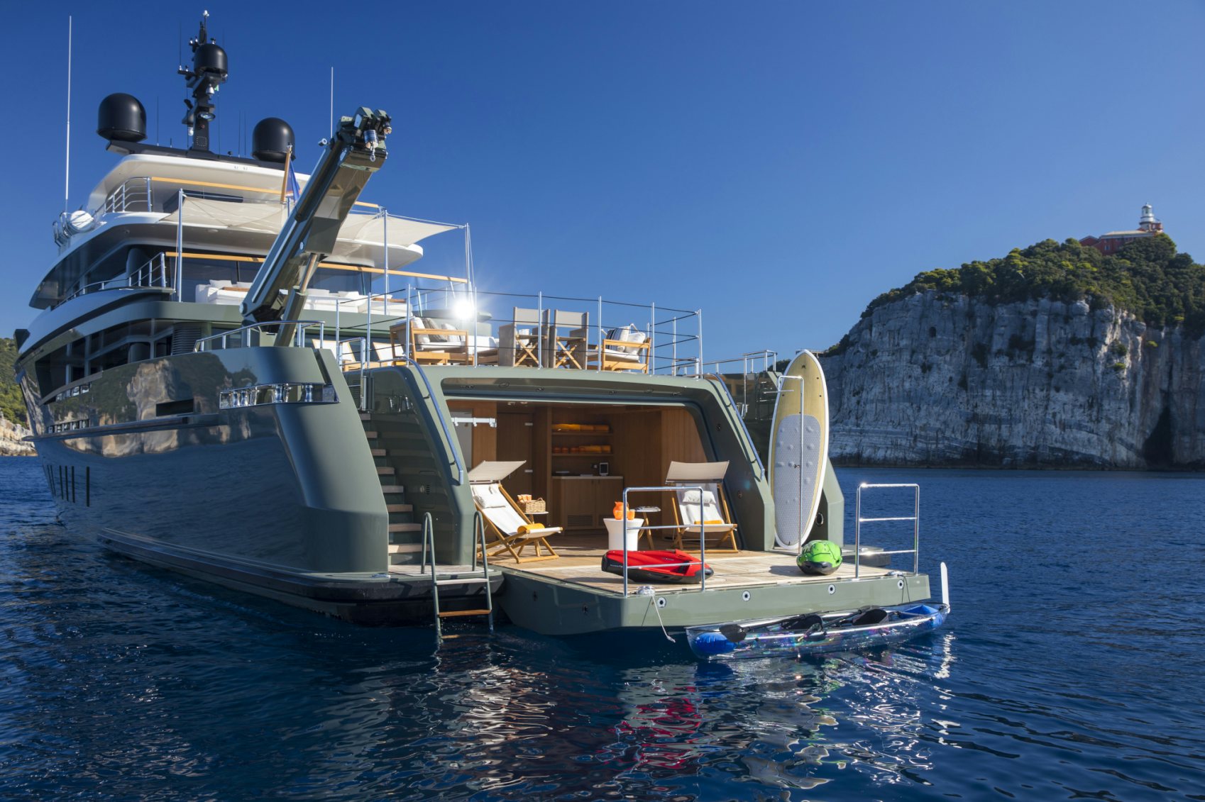 Beach clubs are the ultimate way to enjoy the water while on charter. Imagine yourself lazing in a private waterfront lounge drink in your hand, taking in never-ending sea views, or perhaps diving in for a swim then spending hours enjoying your own private selection of water toys. Beach clubs have become one of the hottest features on the charter market and it is easy to see why. Today’s beach clubs have become all-encompassing waterfront entertainment venues with private lounges, bars, spas, gyms and more. Northrop & Johnson has rounded up seven yachts with impressive beach clubs that will make your charter holiday one-of-a-kind.