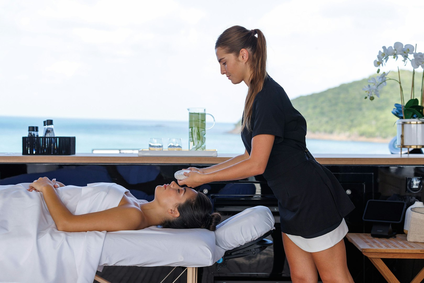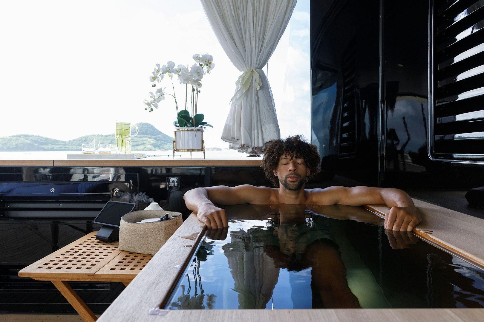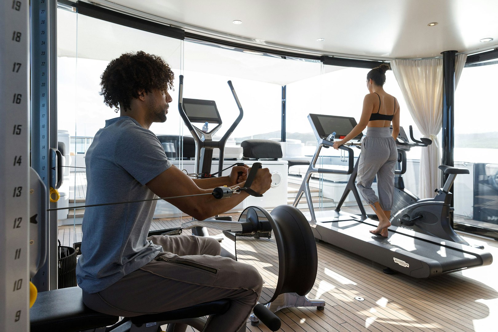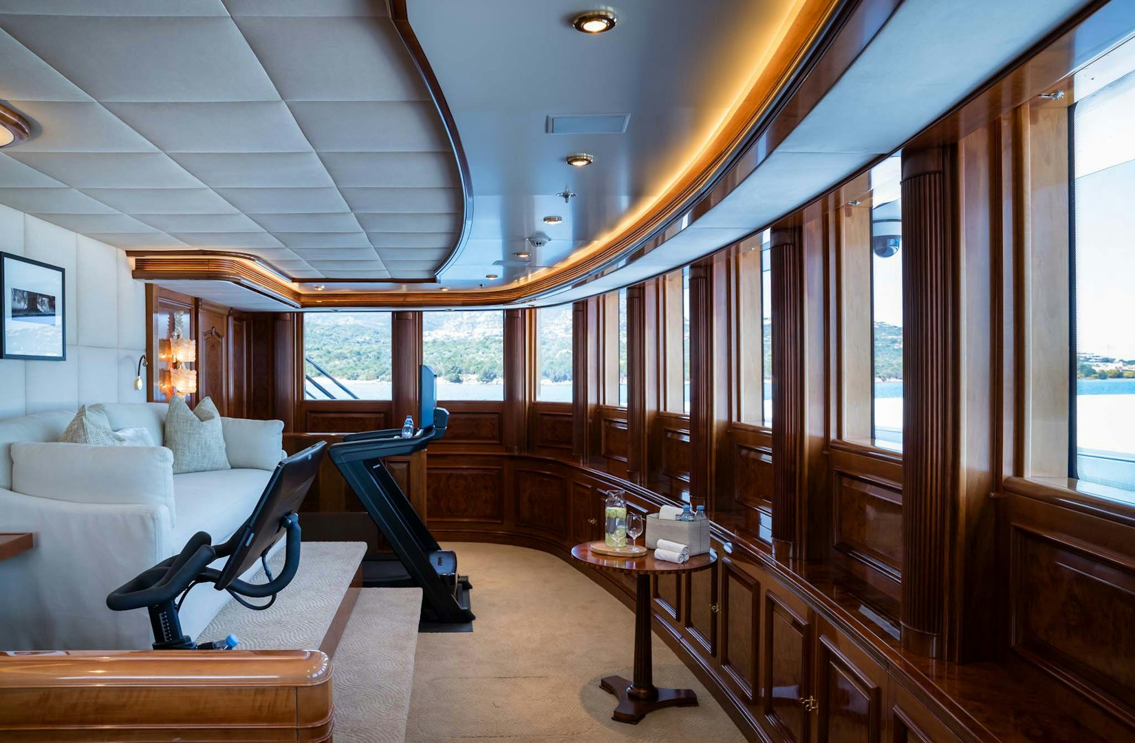 For those seeking balance and well-being, the glass-enclosed wellness deck offers a more restorative pace. You can move between a fully equipped gym, cold plunge pool, and sauna, or simply recline on sun loungers overlooking the ocean. Designed to open to the surrounding deck spaces, this area embodies STARFIRE’s philosophy: luxury that feels intuitive, never forced.