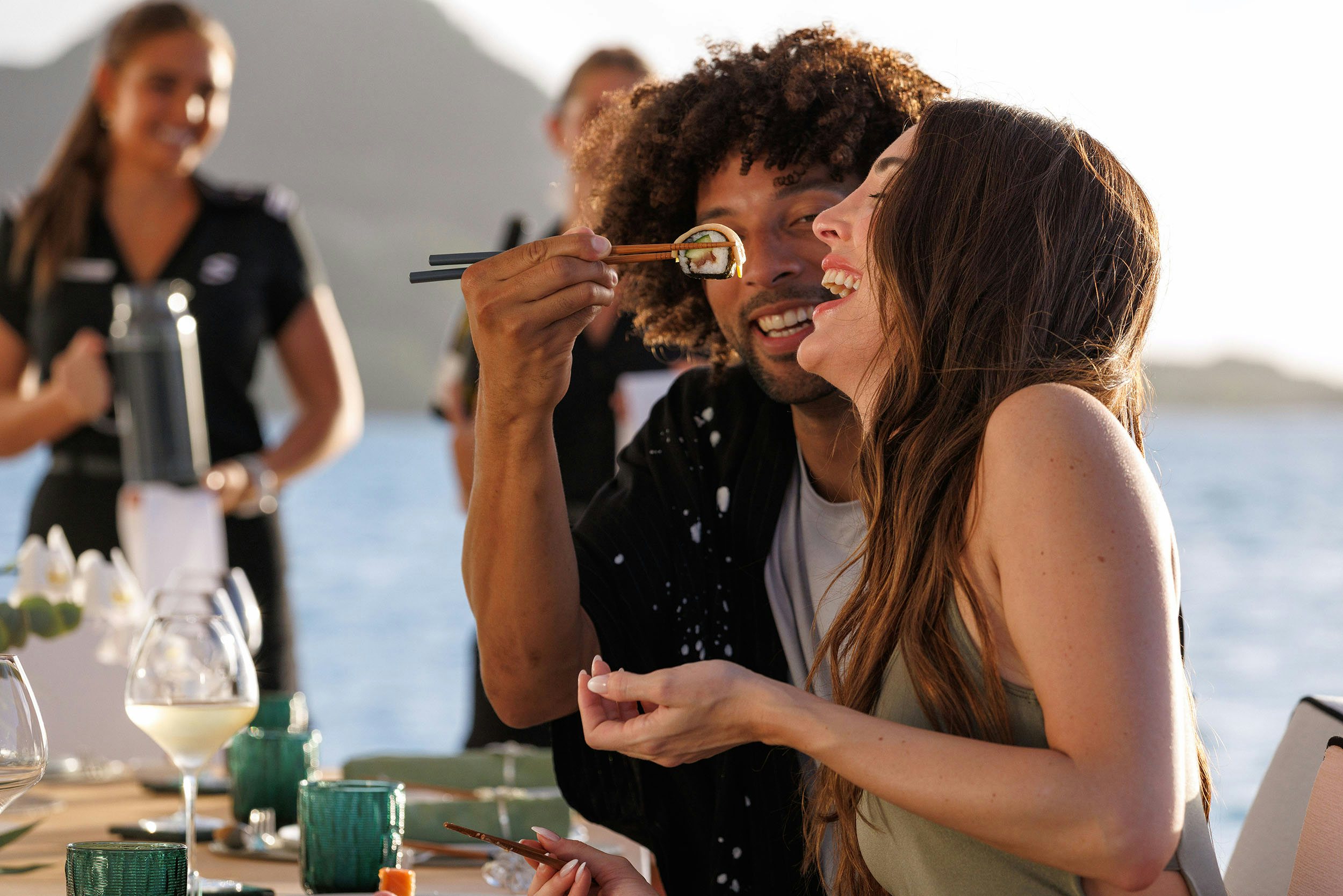 As everyone onboard eases into the rhythm of the morning, you’ll find your way to the aft deck where a generous breakfast spread awaits. Fresh juices, warm pastries, made-to-order favorites, all served alfresco with the sea just beyond the railing. With Lürssen’s legendary build quality delivering smooth, stable cruising, even early transits between anchorages feel effortless, allowing the focus to remain exactly where it should be: enjoying the moment.