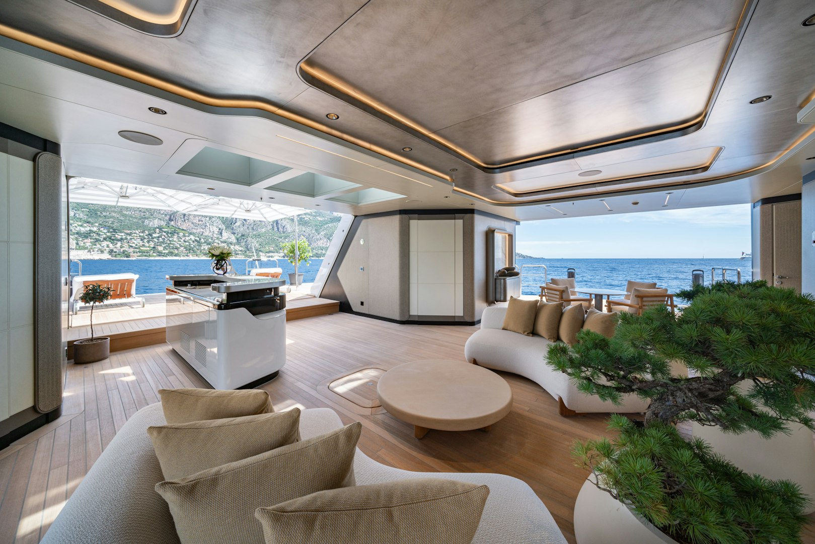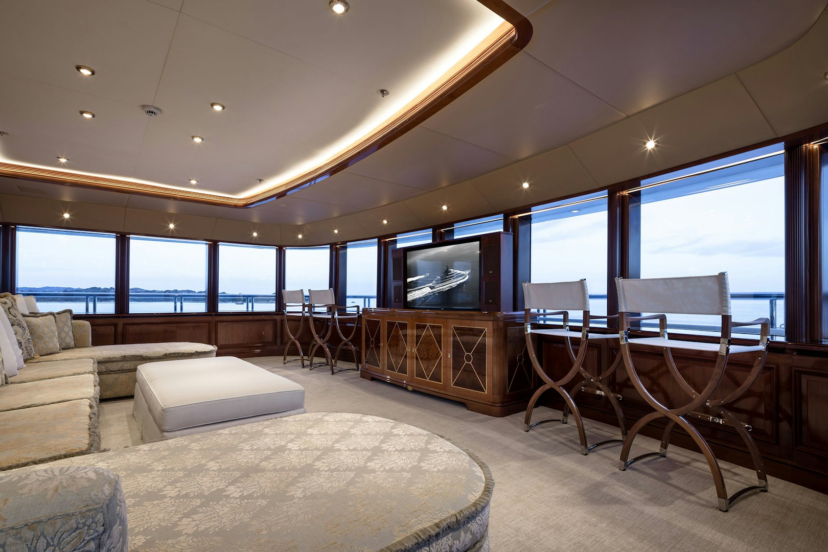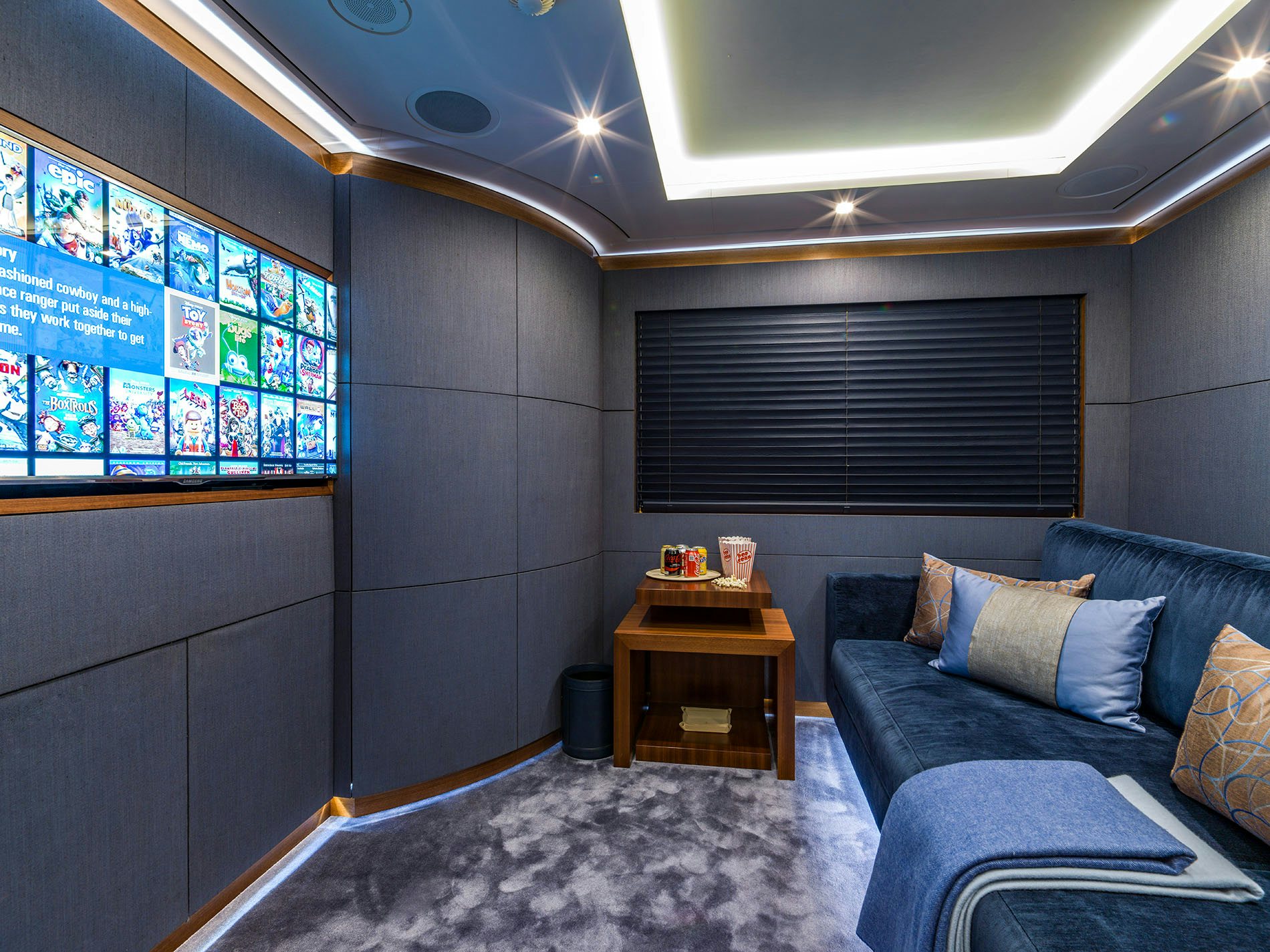 On larger yachts, purpose-built cinemas deliver a truly immersive experience. BOADICEA, for example, has a brand-new 12-seat theater with state-of-the-art audiovisual systems. She also features a main deck VVIP suite, designed as a second master, which makes her especially appealing for dual principals or multi-generational family groups.