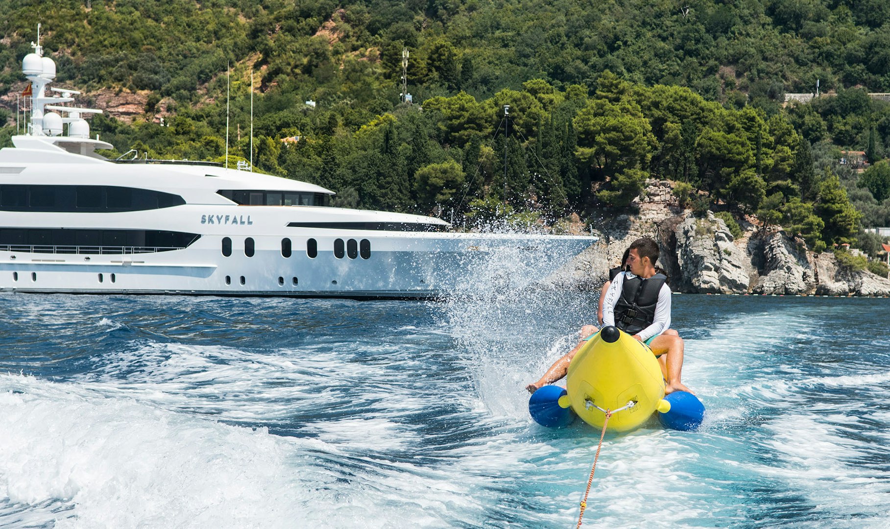 It isn’t just the layout of the accommodation that makes certain yachts more appealing for family charters. SKYFALL offers 3,707 square feet of outdoor living space divided into sections to cater for different occasions, ensuring that everyone is happy. Adults and teenagers alike can challenge their friends to a game of basketball on the sundeck or enjoy a dip in the splash pool, while the garage is packed full of toys to keep the whole family entertained. She also boasts superb accommodations, with a split-level master and equally impressive VIP stateroom, while additional staterooms include an accessible queen bedroom, added to which a wheelchair-accessible elevator allows easy access all three decks.