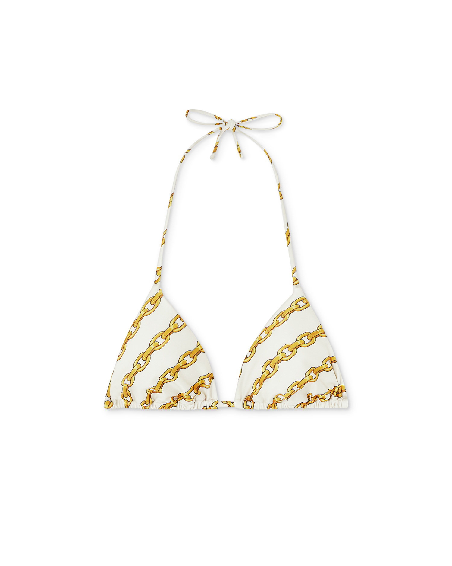This bold two-piece channels signature Versace glamour, with gold-tone hardware, high-cut legs, and a print that radiates Mediterranean luxury.