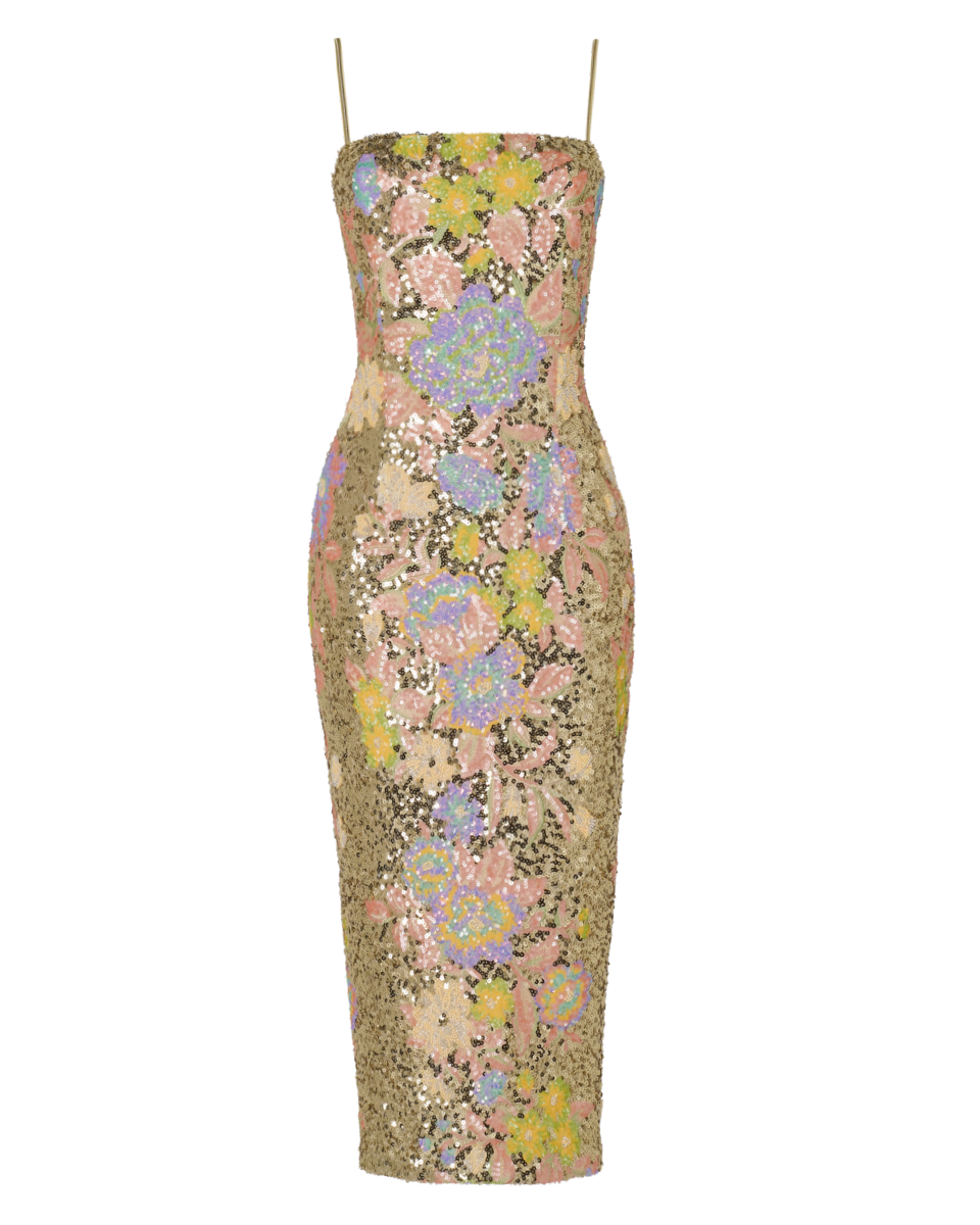 Romantic and radiant, this floral statement dress exudes sunset-soaked glamour and feminine allure.