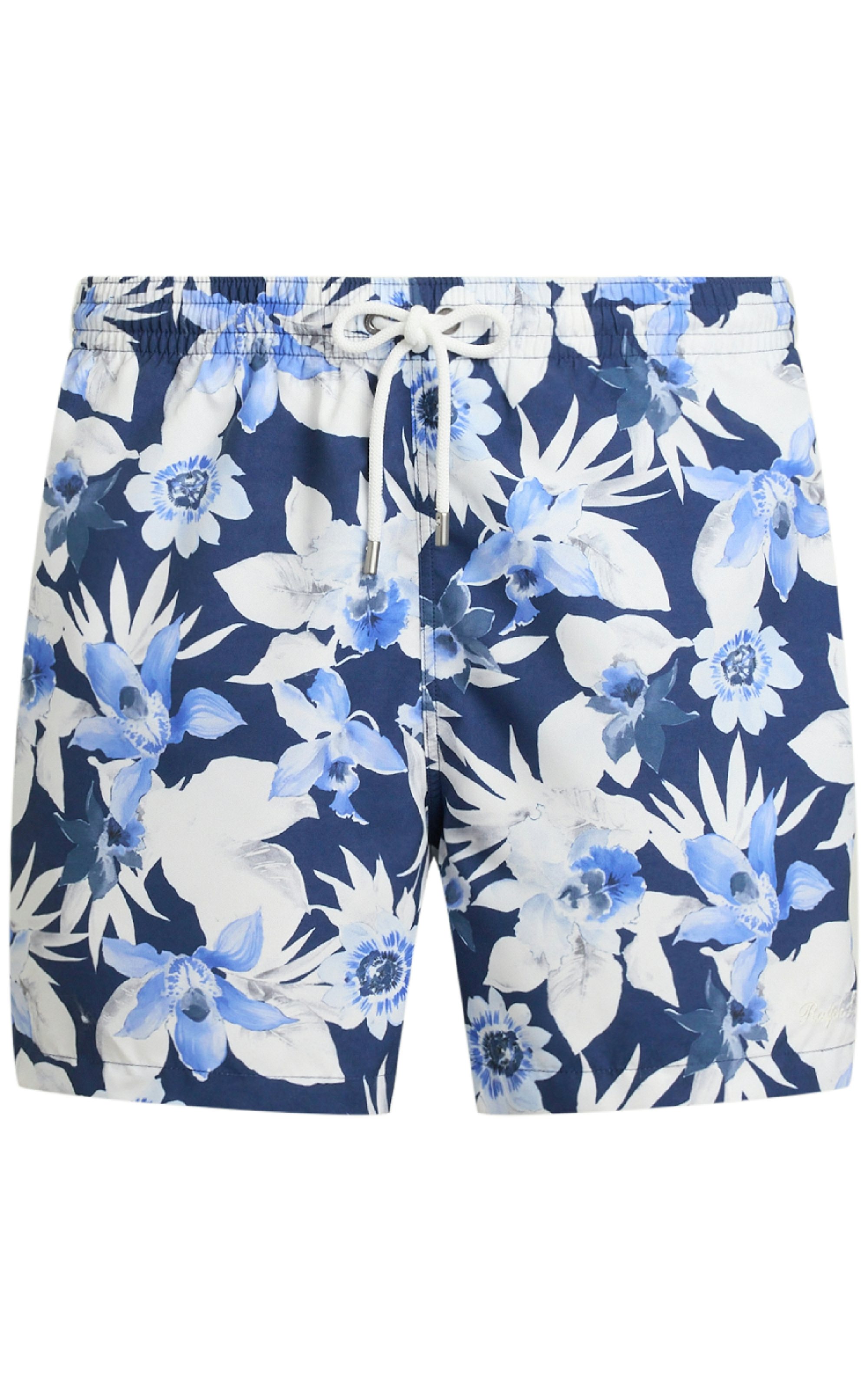A bold floral statement in a tailored fit—refined swimwear for those who lead with style.