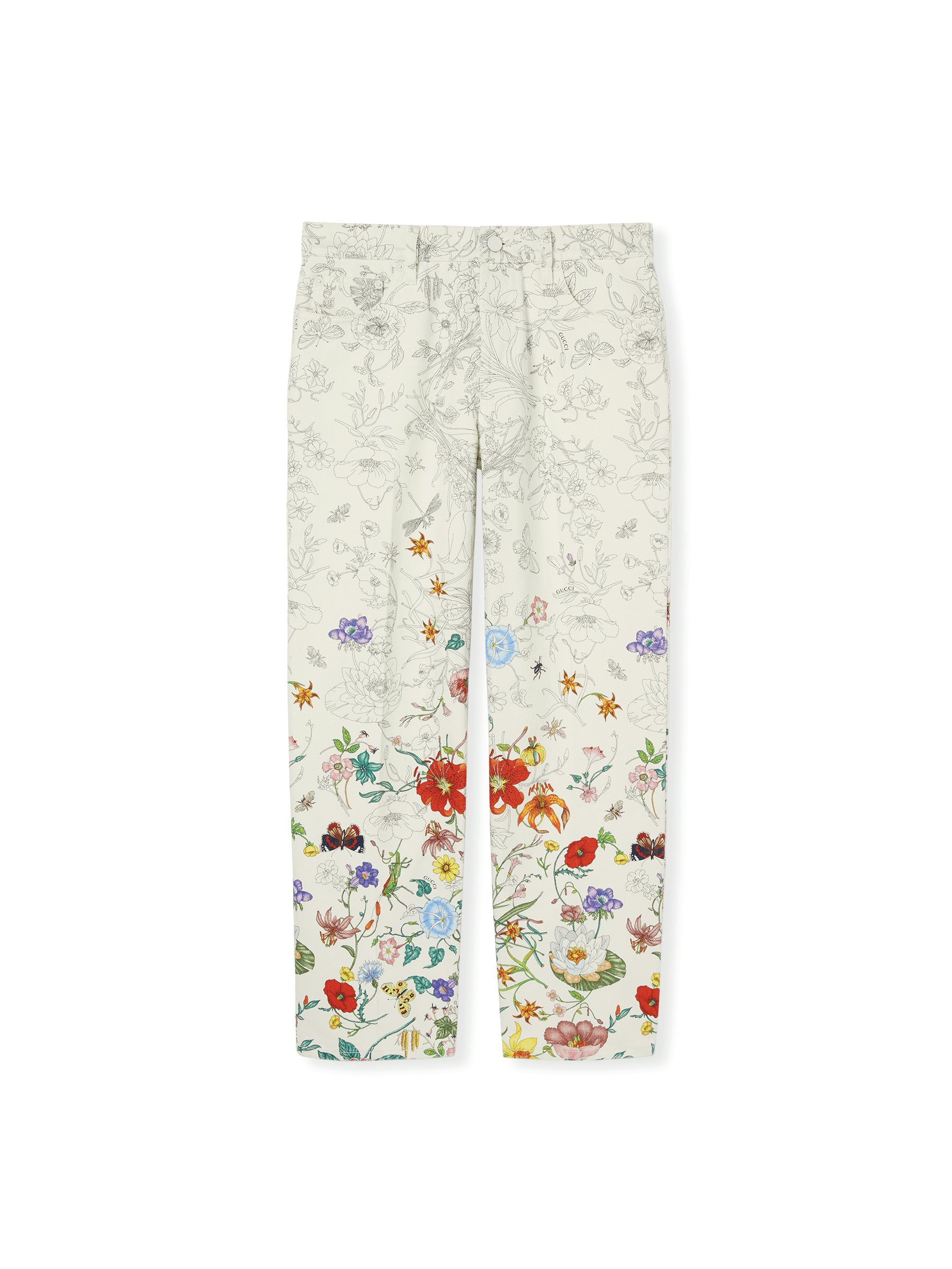 A playful floral motif on luxe denim, perfect for dockside strolls or alfresco lunches.