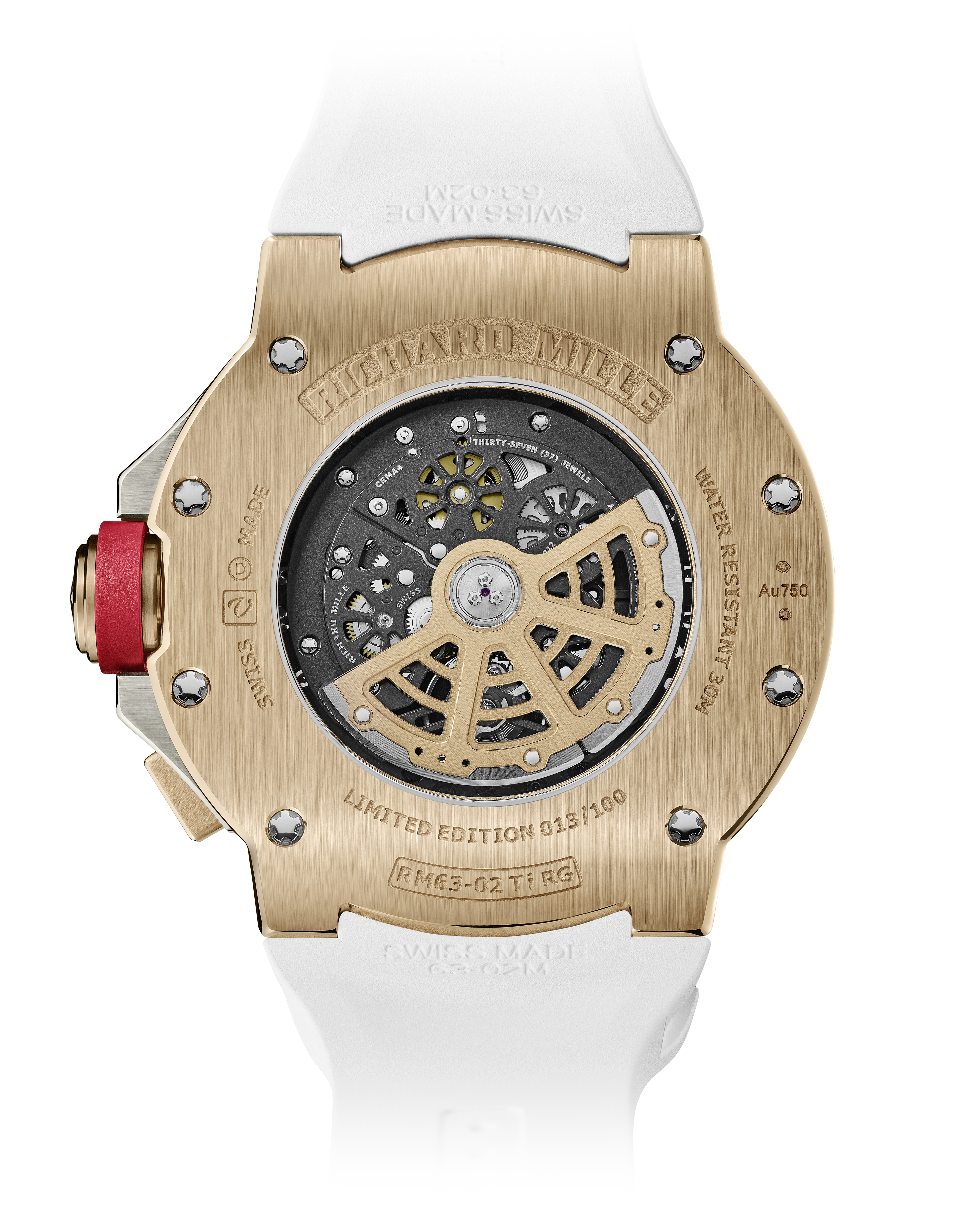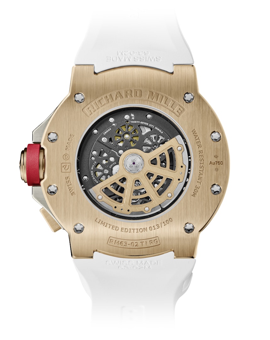 Mechanically sophisticated and visually striking, the movement features polished anglage, PVD coatings, and brushed wheels – hallmarks of Richard Mille’s haute horlogerie craftsmanship. Tested over 5,000 bezel rotations to ensure durability, and water-resistant to 30 meters, the RM 63-02 is built to perform, whether berthed in Porto Cervo or crossing open waters.