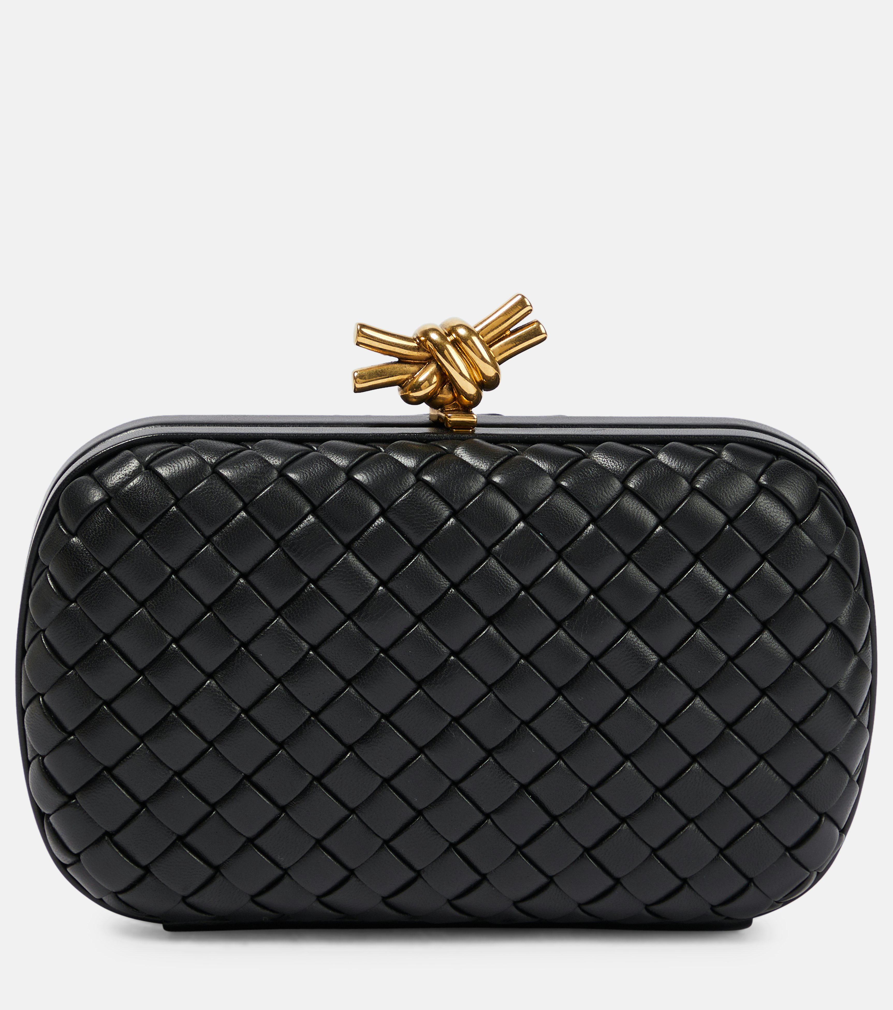 Bottega Veneta’s signature Knot clutch in black exudes sophistication and craftsmanship. The intricate design and luxurious materials make this clutch the perfect accessory to complement your monochromatic evening attire. Available at mytheresa.com.