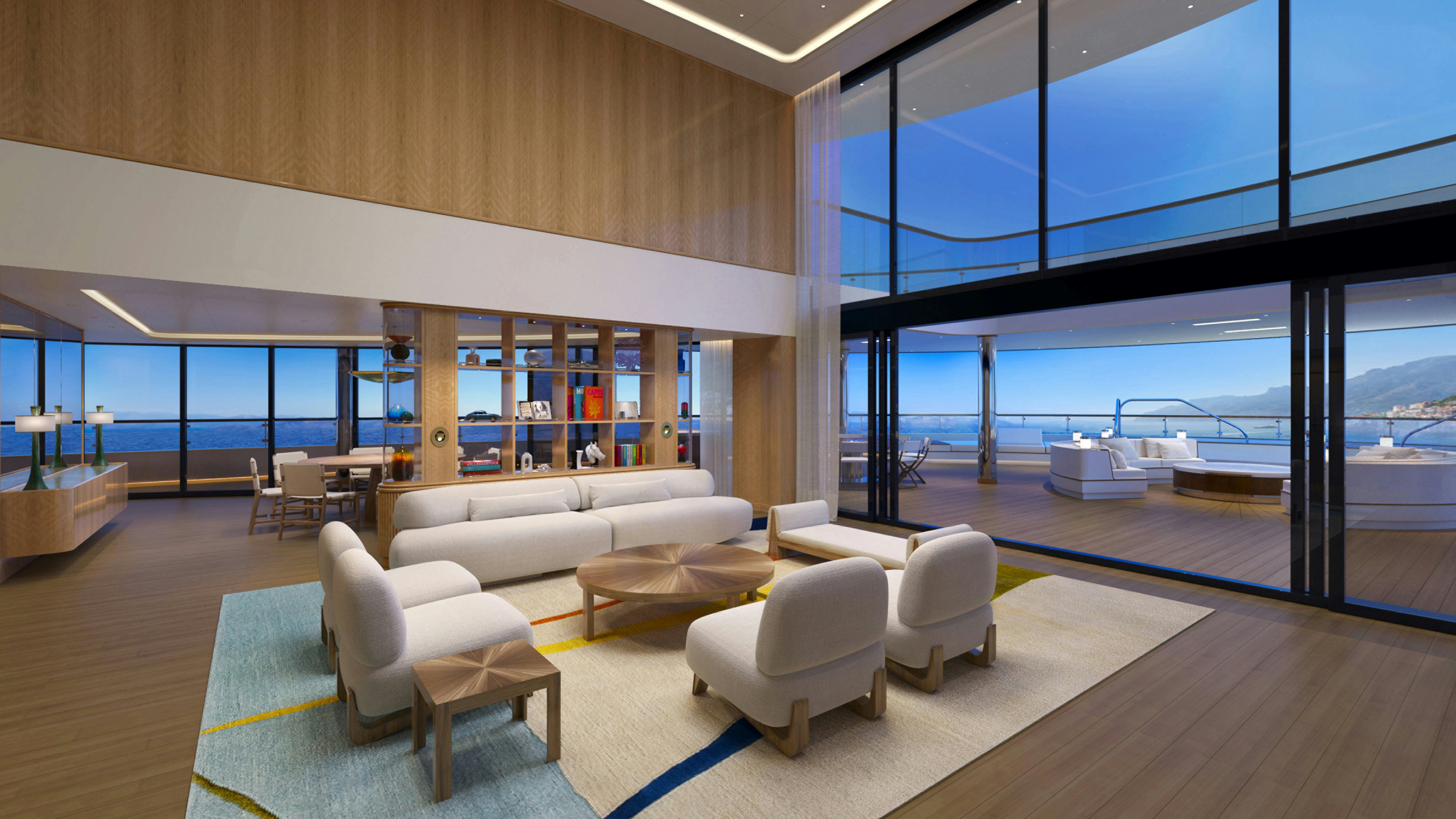 The suites themselves are record-setting. Ranging from 500 to nearly 10,000 square feet, they’re the largest in the yachting class, designed by style icon Prosper Assouline and appointed with floor-to-ceiling windows, private terrace decks, and some with splash pools. The glass-enclosed Funnel Suite, the most exclusive accommodation on the yacht, encompasses three bedrooms across four levels.