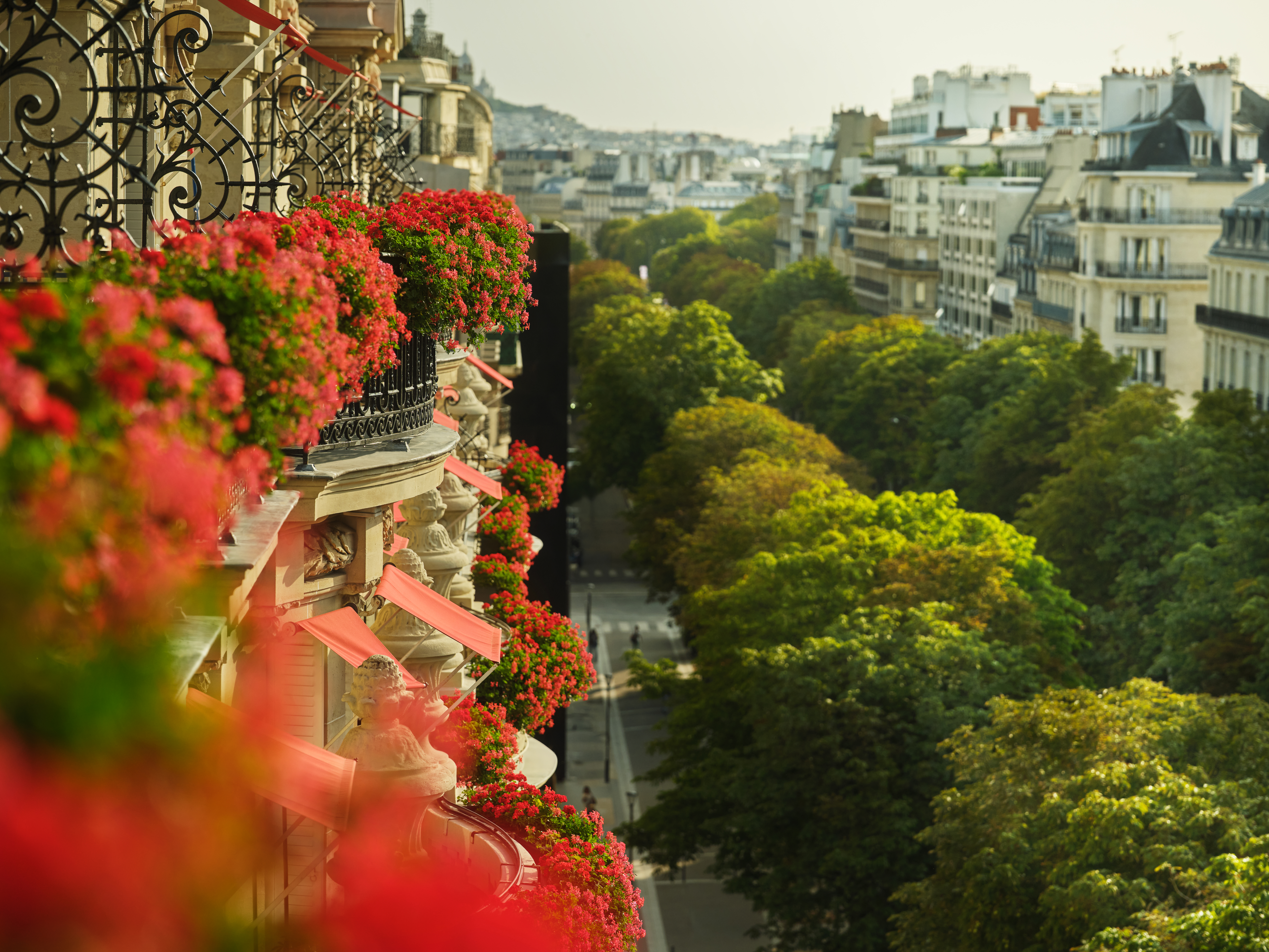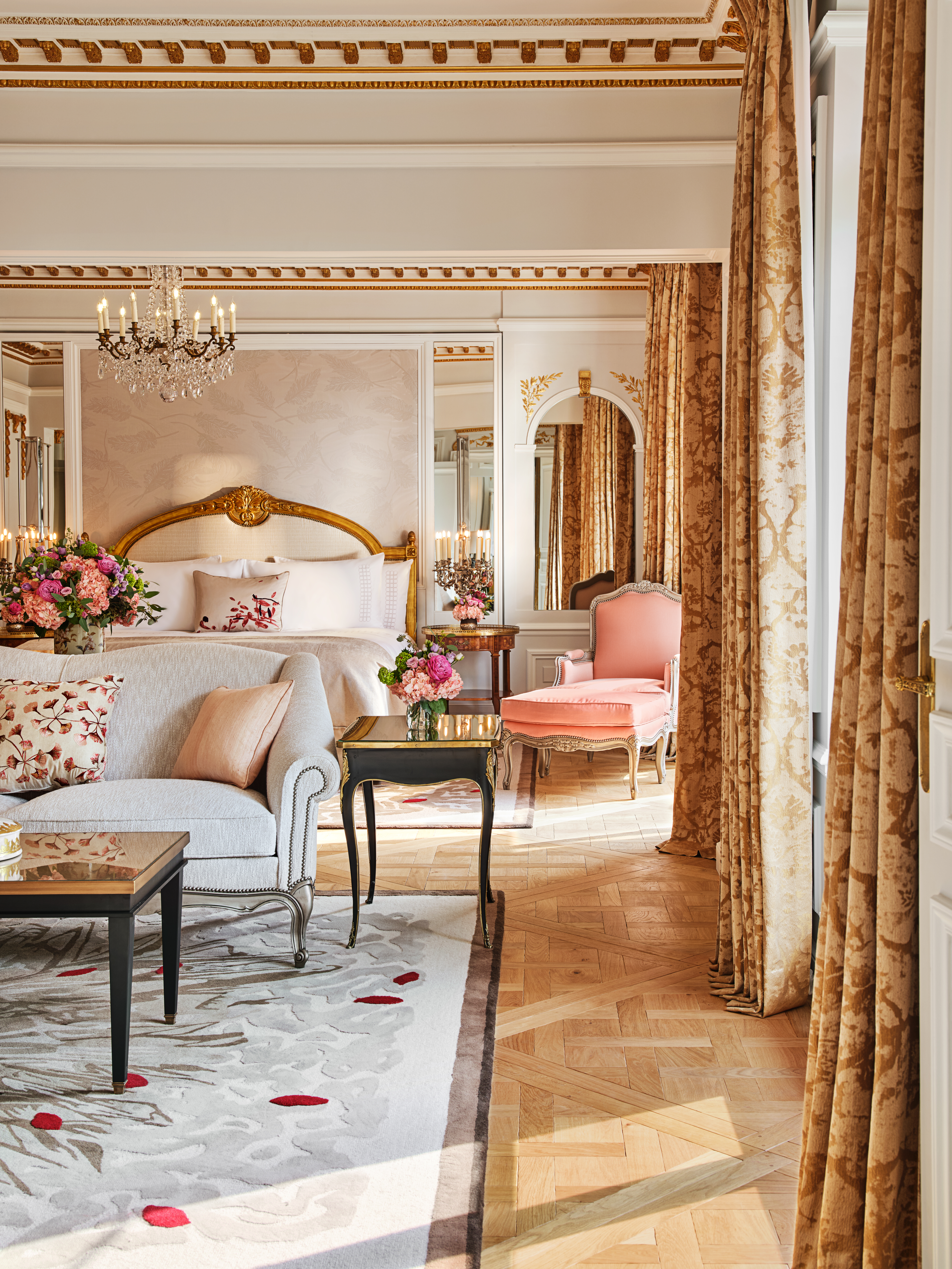 Virginia creeper plant that adorns the façade of La Cour Jardin. The Royal Suite, with four bedrooms, four bathrooms, a sauna and hammam, living room, dining room, and balcony, offers guests panoramic views of the Eiffel Tower and Avenue Montaigne. dorchestercollection.com