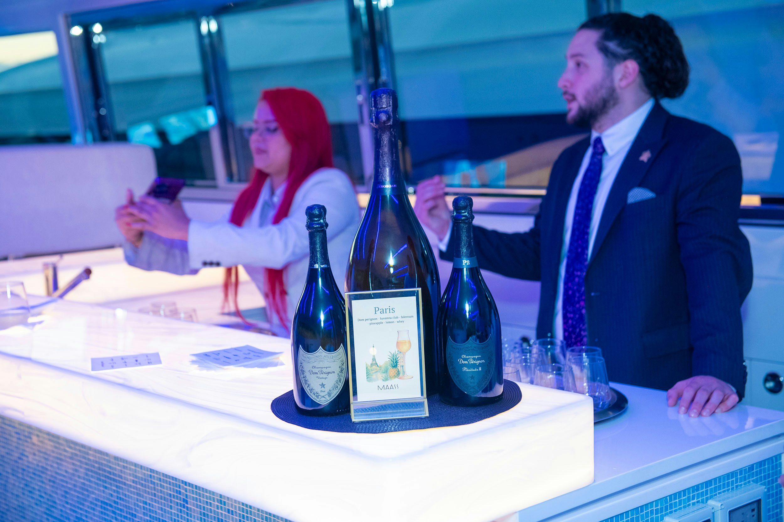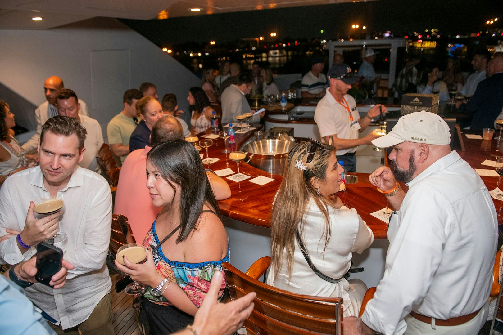 As the sun set, it was time for one of the show’s most anticipated traditions: the 2025 Northrop & Johnson Yacht Hop. Guests joined the N&J team for an evening of cocktails, cuisine, and conversation across our showcase of stunning yachts. At the stand, the Chopin cocktail bar, Silver Lining Catering, and Golden Goat Caviar Cart set the tone, while onboard experiences elevated the night even further: MISS MICHELLE’s MASS cocktail bar, NO BAD IDEAS’ Italian spritz bar, VALINOR’s Macallan whiskey tasting, REHAB’s Bahamas Pink Sands bar, STAR DIAMOND’s espresso martinis and Piper & Skye display, IMPROMPTU’s NetJets cocktail bar, and SURPLUS LINES’ wine bar.
