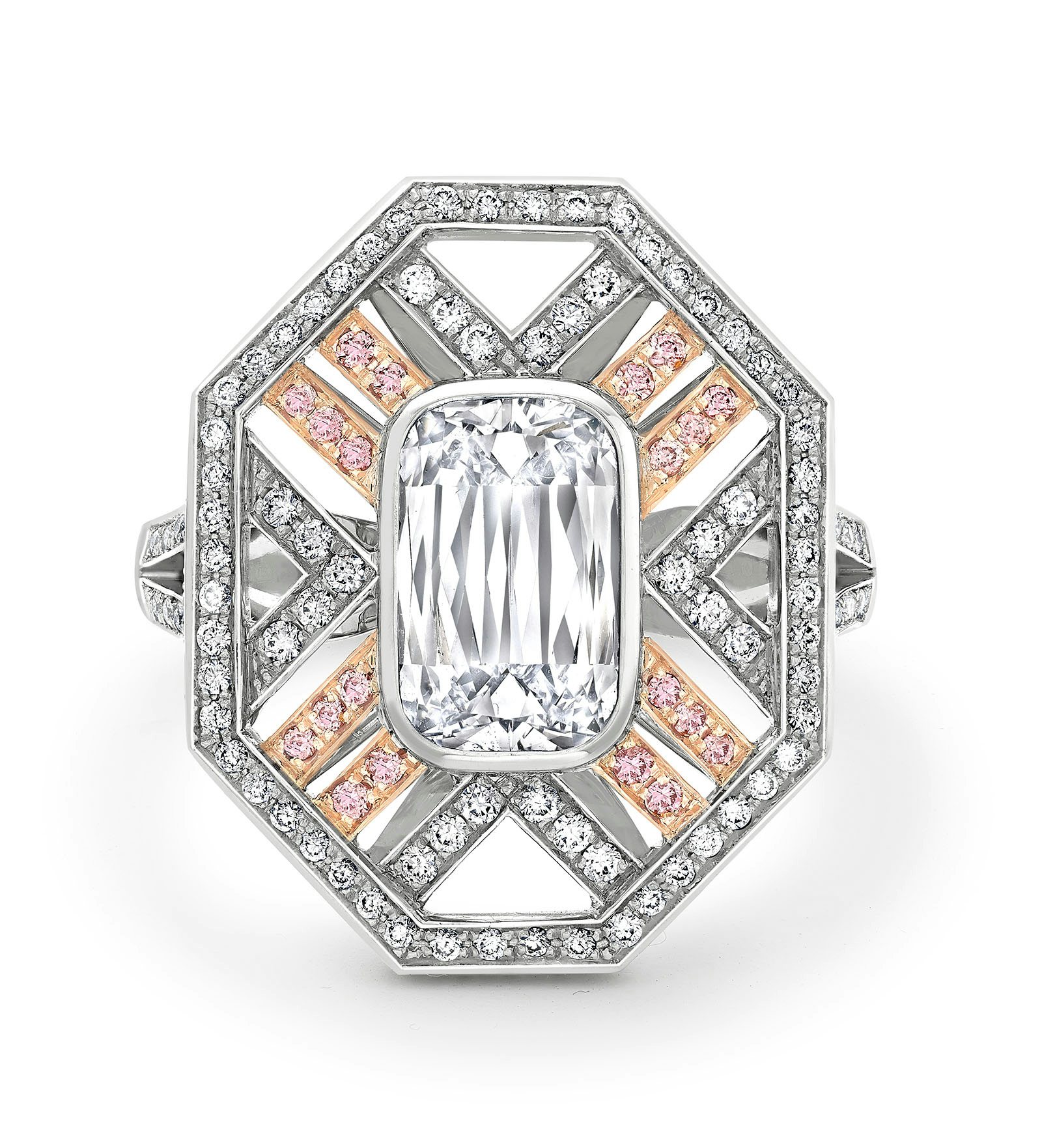 Add some sparkle with Boodles’ Fifth Avenue ring set with an Ashoka cut diamond with pink enamel in platinum and 18-karat Single Mine Origin pink gold. boodles.com