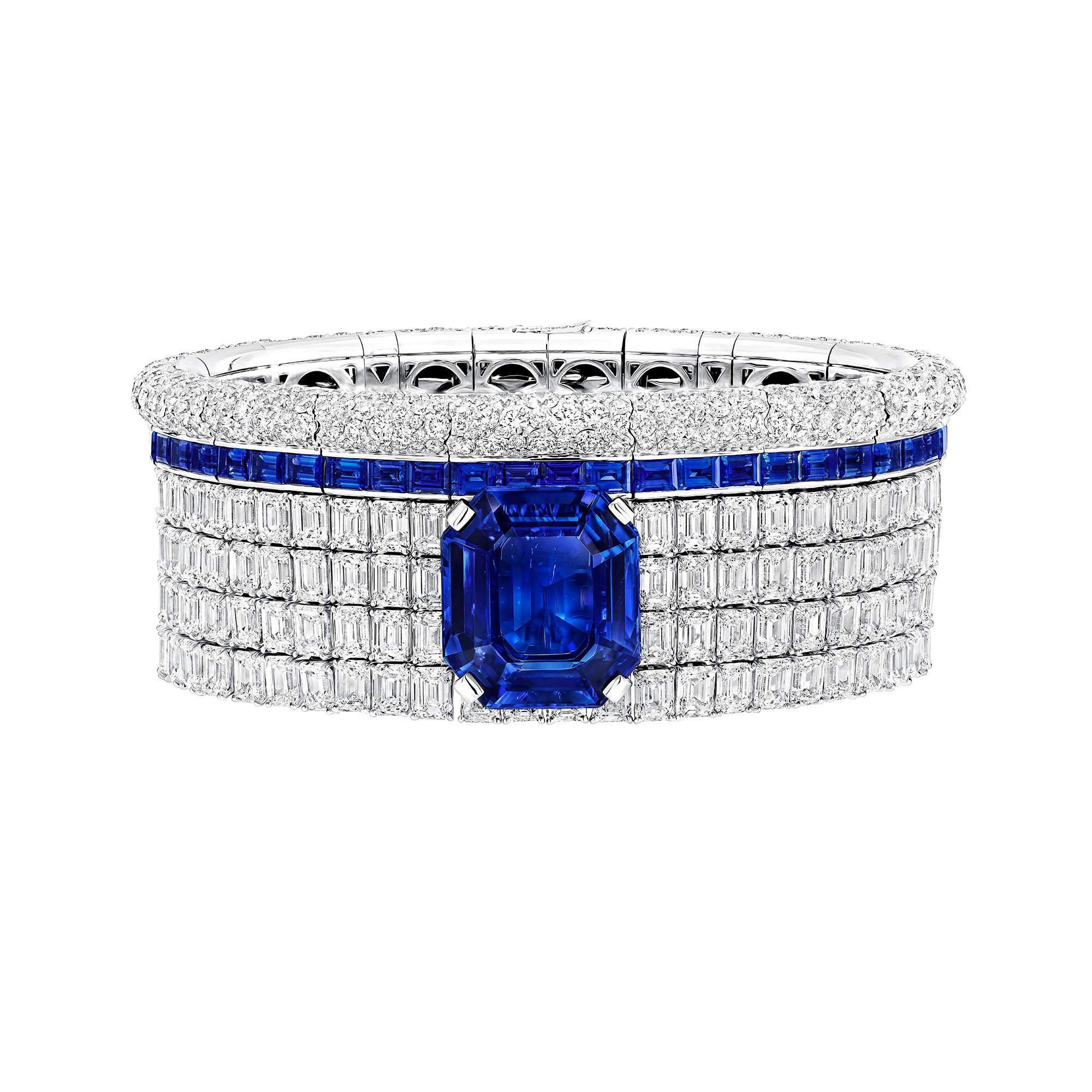 A special occasion piece from Graff’s High Jewellery creations, the 17.05 carat Emerald Cut Sapphire Bangle will be received as a token of affection for the holiday season. Featuring 25.74 carats of sapphire and 50.35 carats of multi-shape white diamonds. graff.com