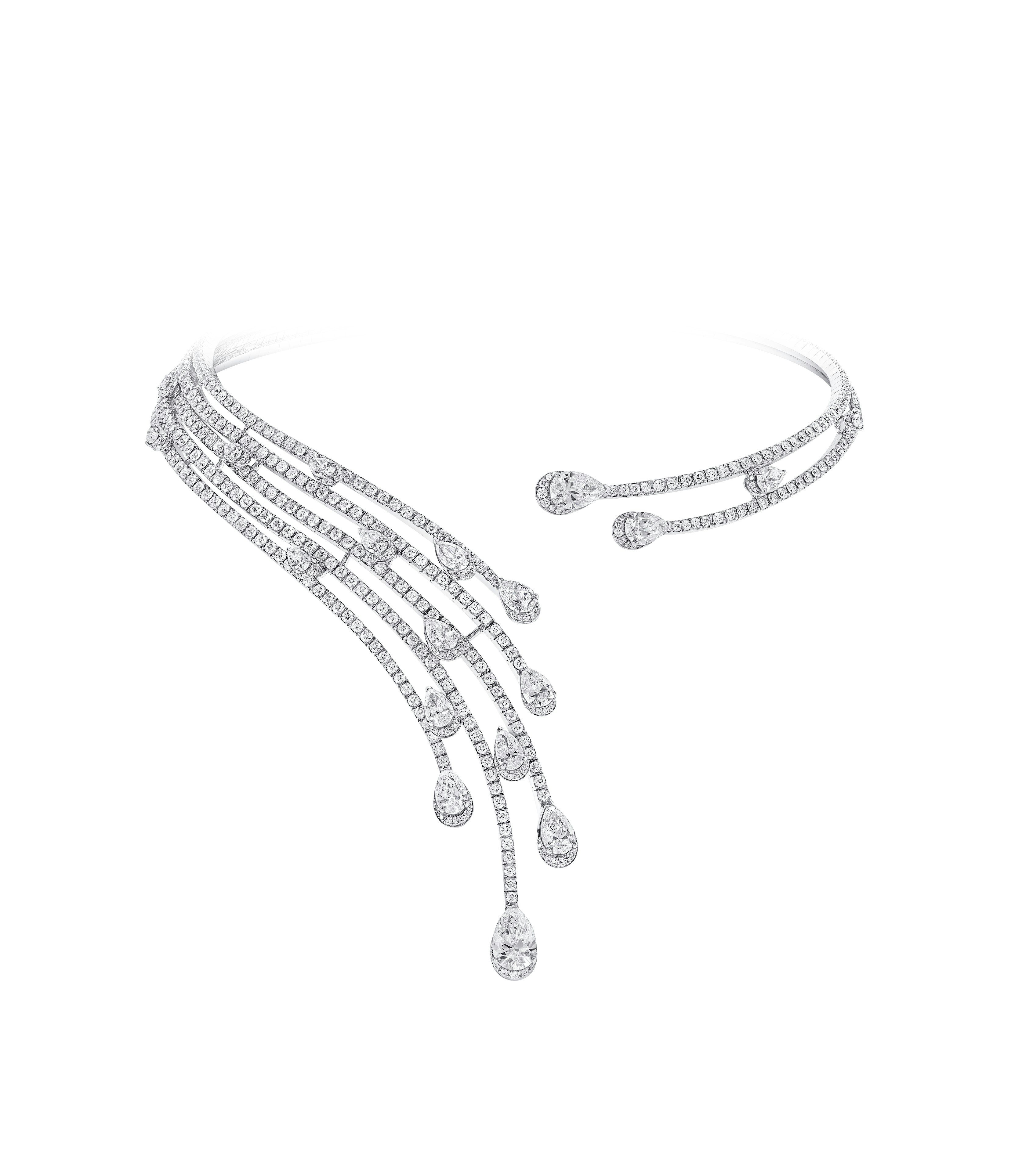 For those who appreciate the art of subtle luxury, Graff’s Duet Collection offers a wave-inspired necklace that brings the ocean to life in a breathtaking design. Crafted with 29.62 carats of sparkling white diamonds in 18-karat white gold, this necklace is more than just a piece of jewelry—it’s a statement. Whether you’re enjoying a sunset cocktail on the deck or attending a glamorous onshore event, this necklace will ensure you sparkle with sophistication wherever you go. graff.com