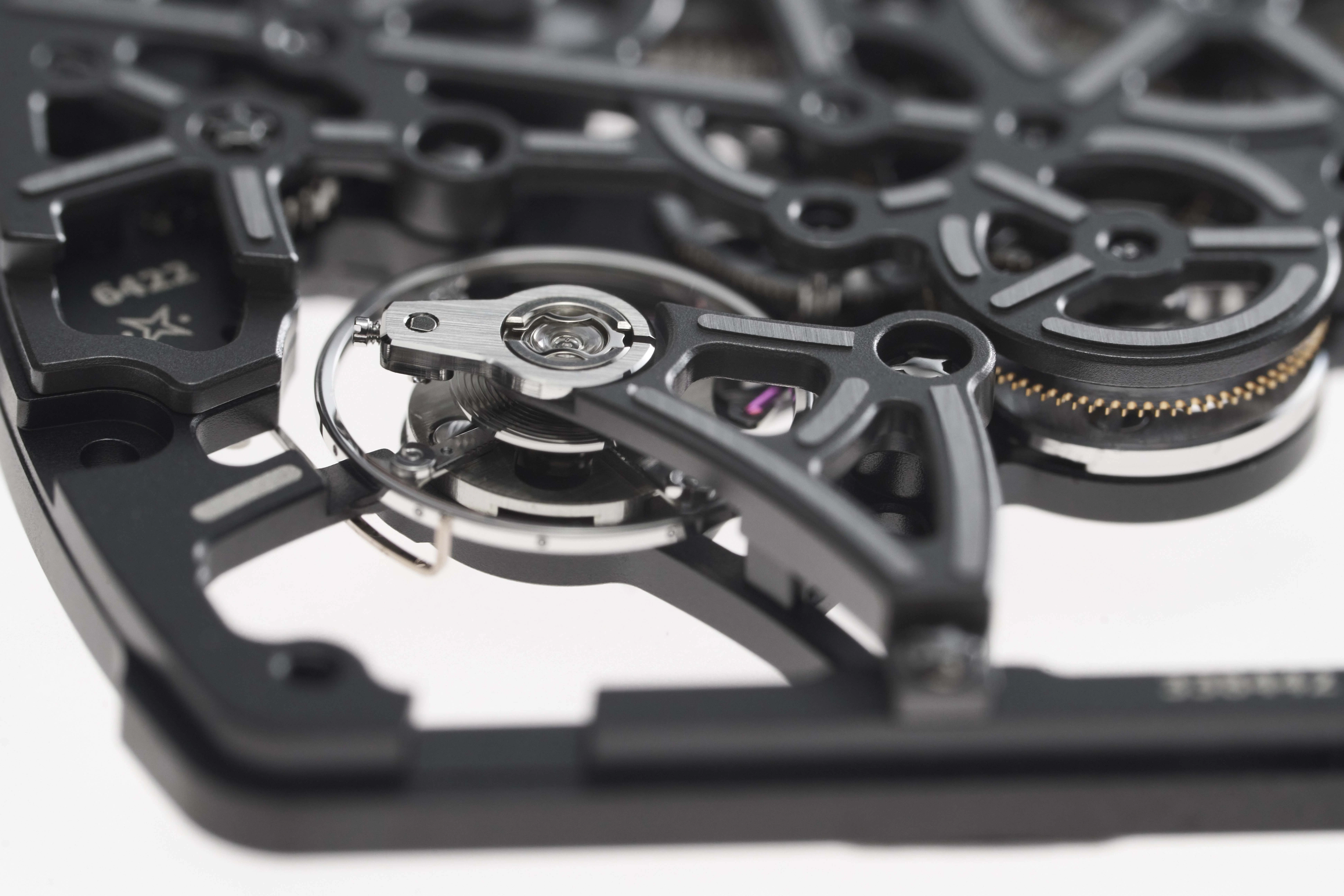 The baseplate and bridges are made from grade 5 titanium, finished with a combination of micro-blasting, PVD coating, and Titalyt ® treatment. As expected from Richard Mille, the execution is precise, though the emphasis here is less on decorative detail and more on durability and weight optimization.