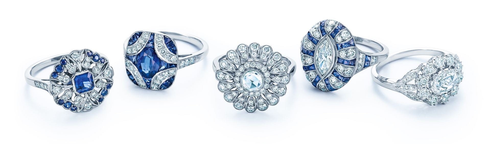 New York’s LJ West offers a Fancy Blue and Pink radiant-cut diamond ring. The 1.01ct emerald is a vivid bluish-green diamond VS2 set in platinum and 18-karat white gold accented by 10 pink emerald-cut diamonds weighing 1.3-carats and 32 white round diamonds weighing 0.77-carat as well as six straight white baguettes weighing 0.62ct.