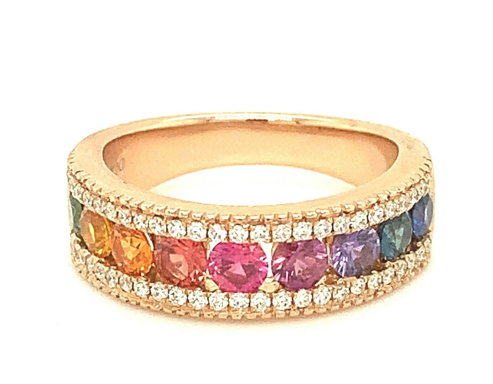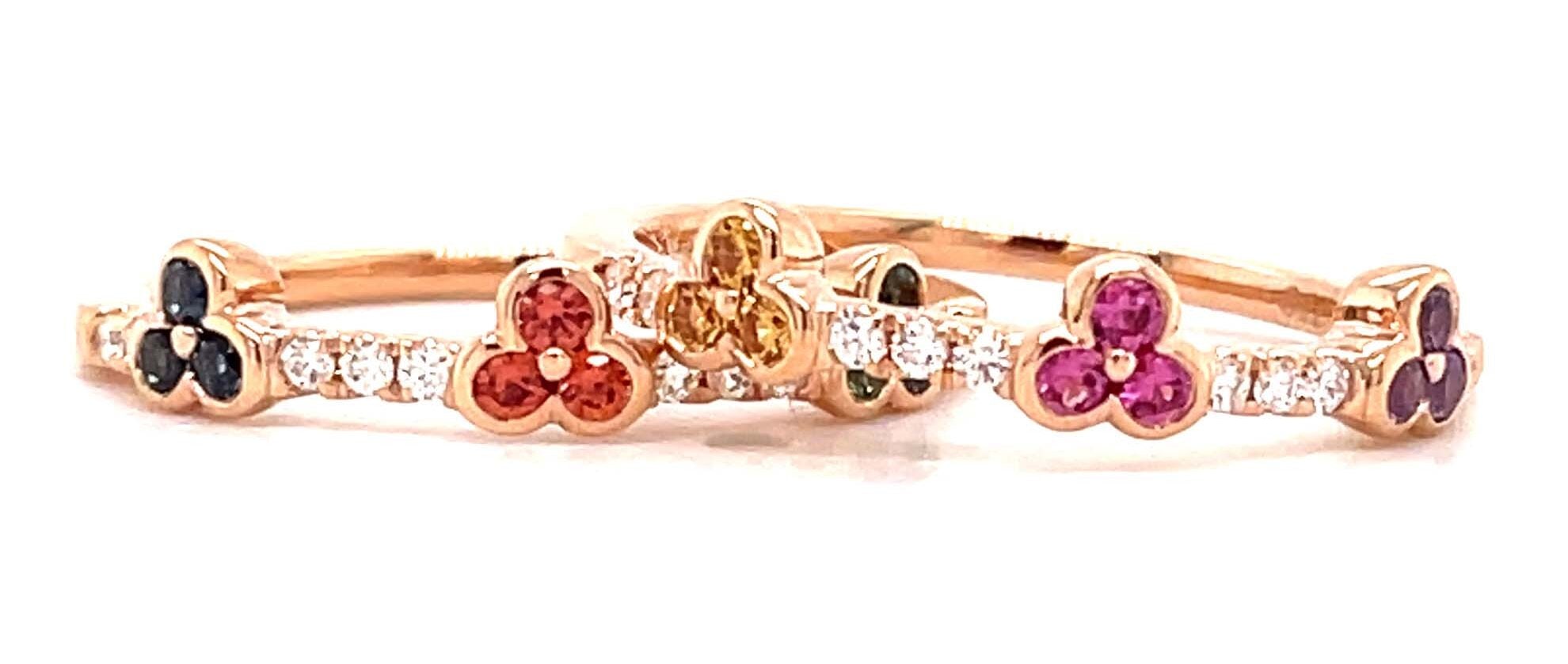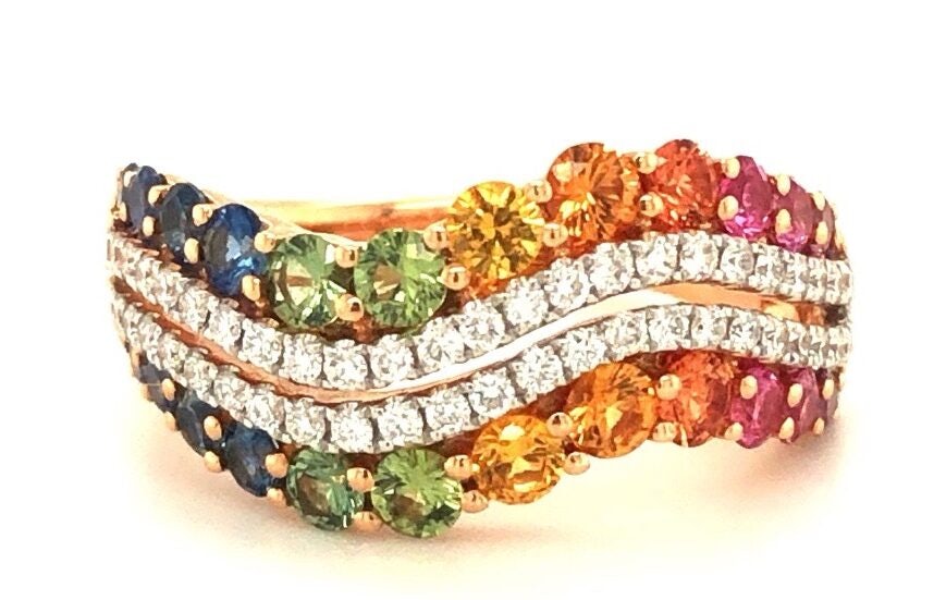New York and Los Angeles- based designer Lisa Nik’s Colors Collection has the ability to influence moods and emotions. Combining bold and rare colored gemstones with diamonds in 18-karat white, rose and yellow gold, choose the stackable 18-karat rose gold ring or the Ring Guards or Wave Band for