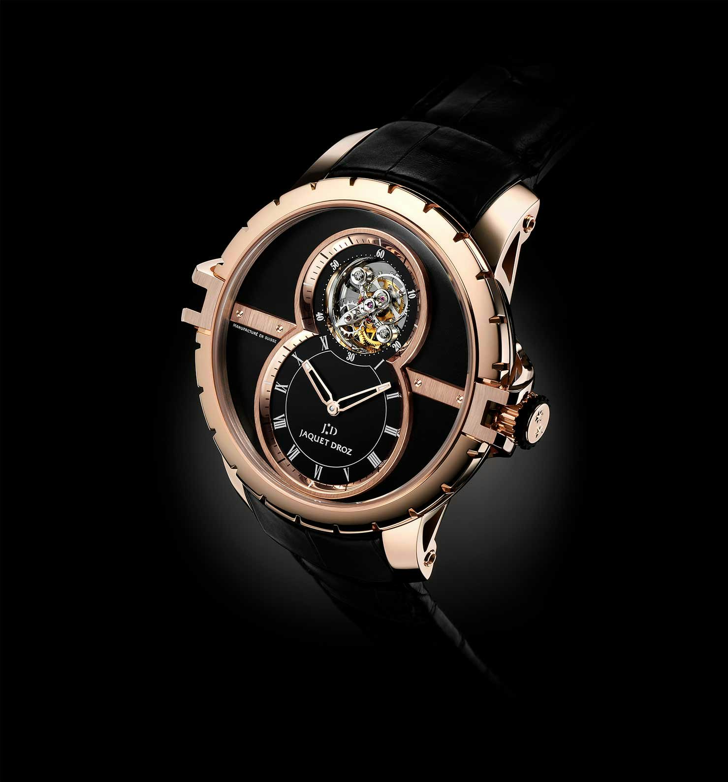 The black dial with rubber treatment set in 18-karat red gold, 45-millimeter case shows a sporty interpretation of this Jaquet Droz iconic timepiece. With a seven-day power reserve, it explores new frontiers by playing with subtle associations of materials, textures and volumes and combining strength and modernity. Sporty and impulsive, yet classically distinguished, the SW personifies the very avant-garde values of the always-moving Pierre Jaquet-Droz.