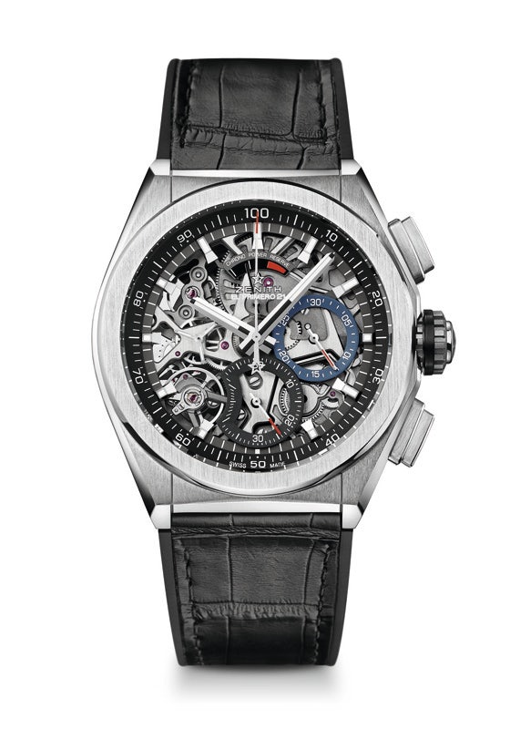 Zenith’s Defy El Primero 21 is the master of extreme precision with its 100th of a second chronograph movement. It displays hundredths of a second by means of a central hand and beats at a frequency of 50 Hz, making it ten times faster and more accurate than its predecessor.