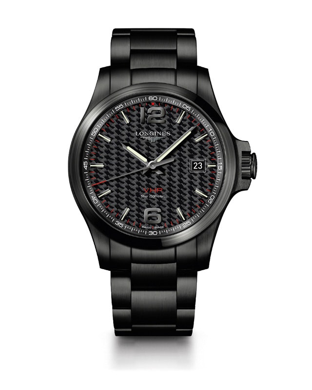 Longines has used its decades of experience with quartz in the Conquest V.H.P. steel 41-millimeter diameter watch, which displays hours, minutes and seconds on its silvered dial with steel bracelet and a folding safety clasp. The perpetual calendar movement by ETA is exclusive to Longines and is renowned for precision and the ability to reset its hands after an impact or exposure to a magnetic field by using a gear position detection system.
