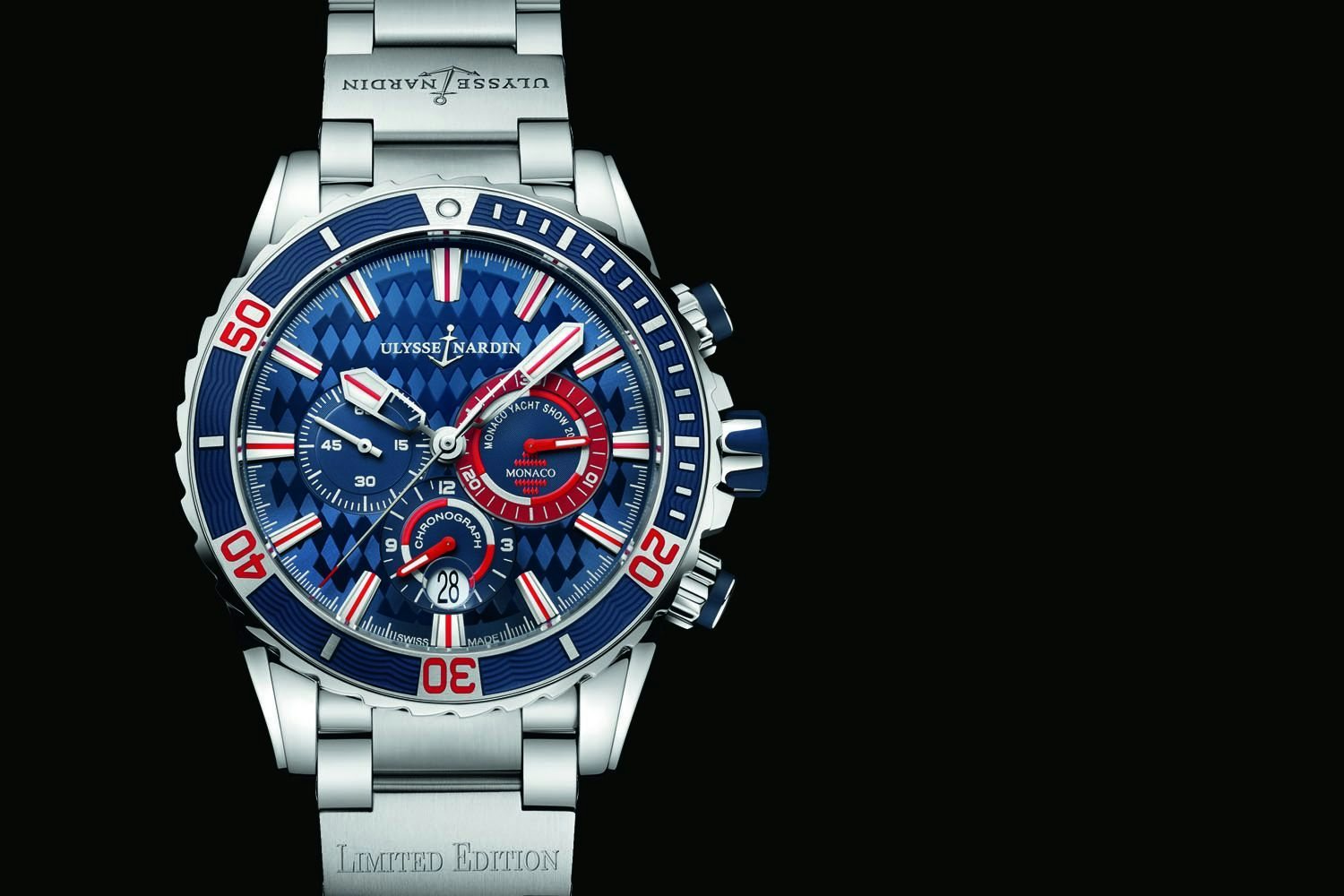 The Limited Edition Diver Chronograph Monaco brings a vibrant red and blue pattern that is sure to catch the attention of others. It is limited to 100 pieces in stainless steel. The watch is a fully functional dive watch, including a self-winding movement and chronograph. It comes in a 44-millimeter case featuring a unidirectional diving bezel with water resistance of up to 300 meters. There is a 48-hours power reserve and an anti-reflective sapphire crystal. The back is decorated with the sign of the Principality.