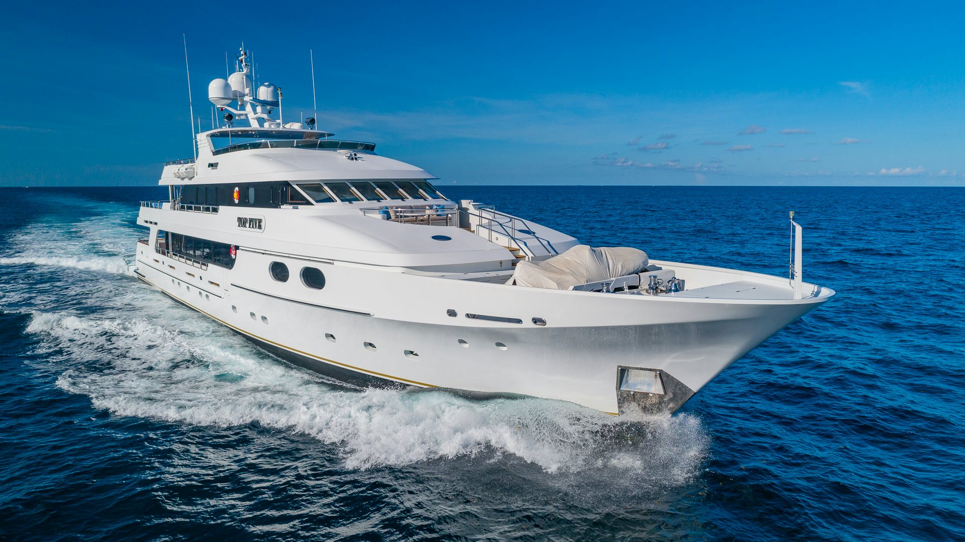 TOP FIVE was built by Christensen in 2005 and received a refit in 2018. Showcasing a high-quality build and luxurious amenities this yacht offers a desirable on-water retreat.