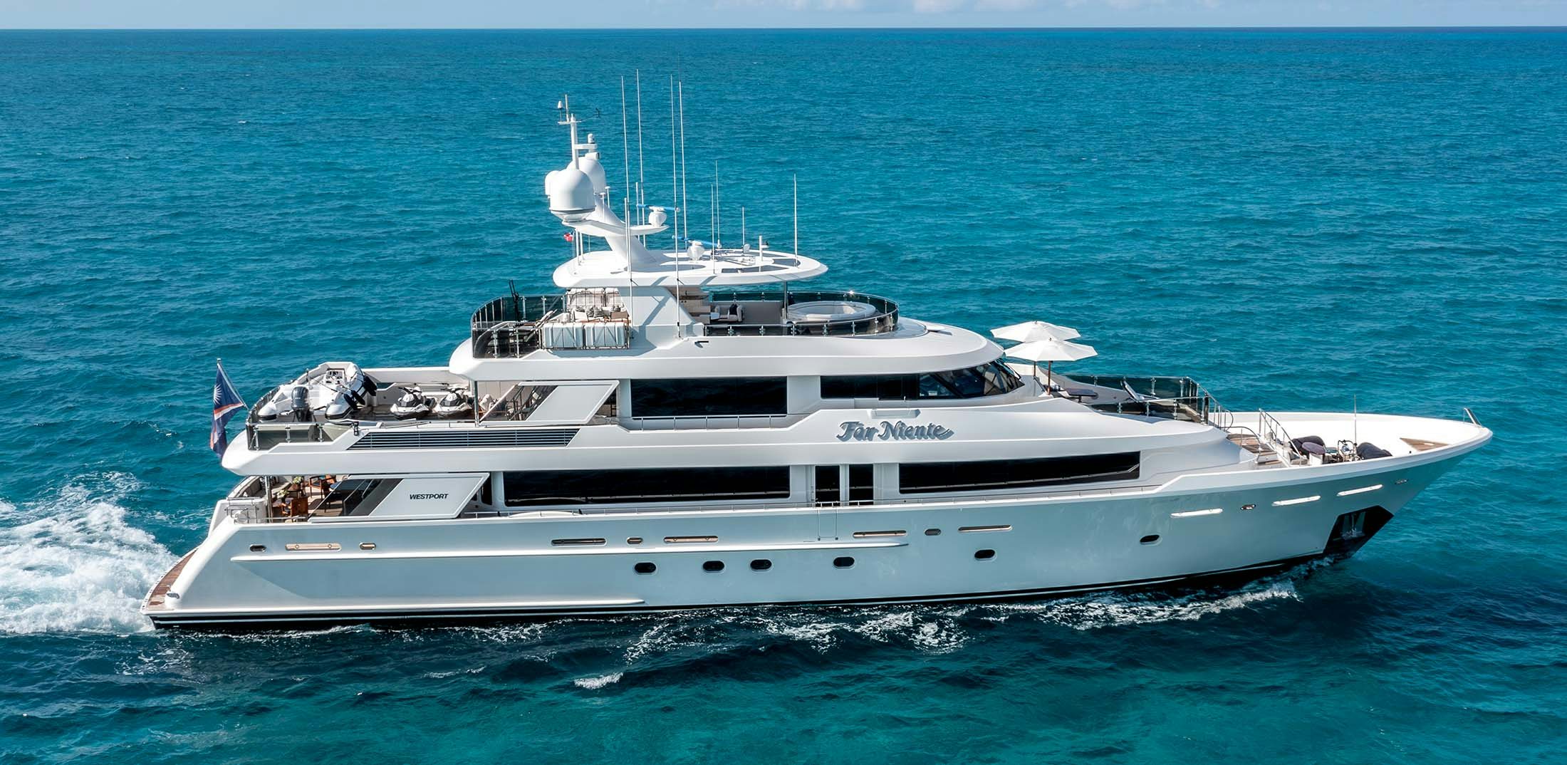 The 40m Westport FAR NIENTE is in impeccable condition, having only had one owner since her delivery in 2014. She boasts an impressive pedigree, reliability and a host of five-star amenities that promise a seamless yachting experience.